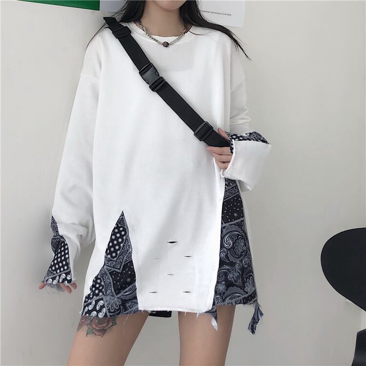 セーター レディース秋物韓国ファッショントレンドトップス ルーズジャケット ロング 原宿 オータム ステッチ スタイル 長袖 デーモン82737091014