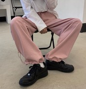 パンツ レディース韓国ファッショントレンドギャザールーズハイウェストウェストカジュアル ピンク ボーイズ スタイル ウエスト デーモン75628130258