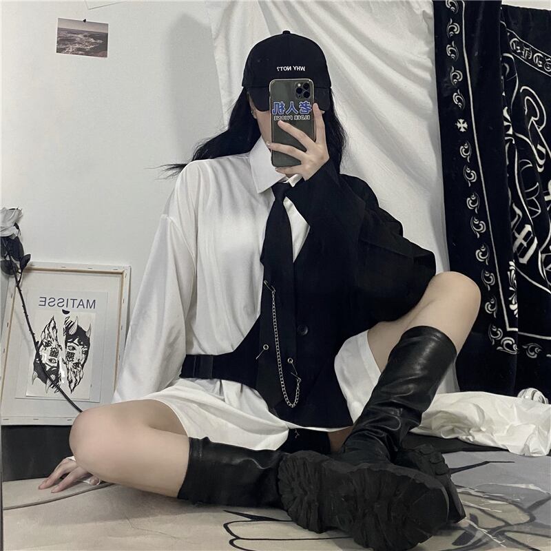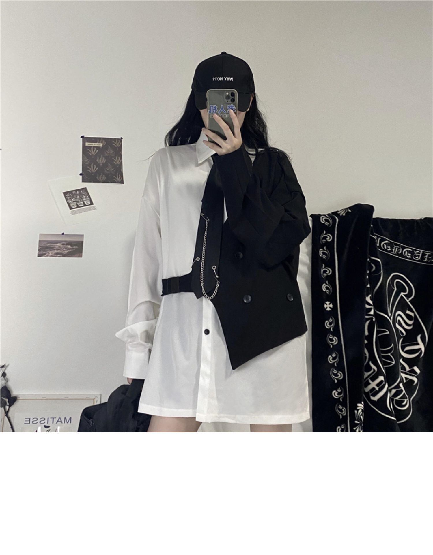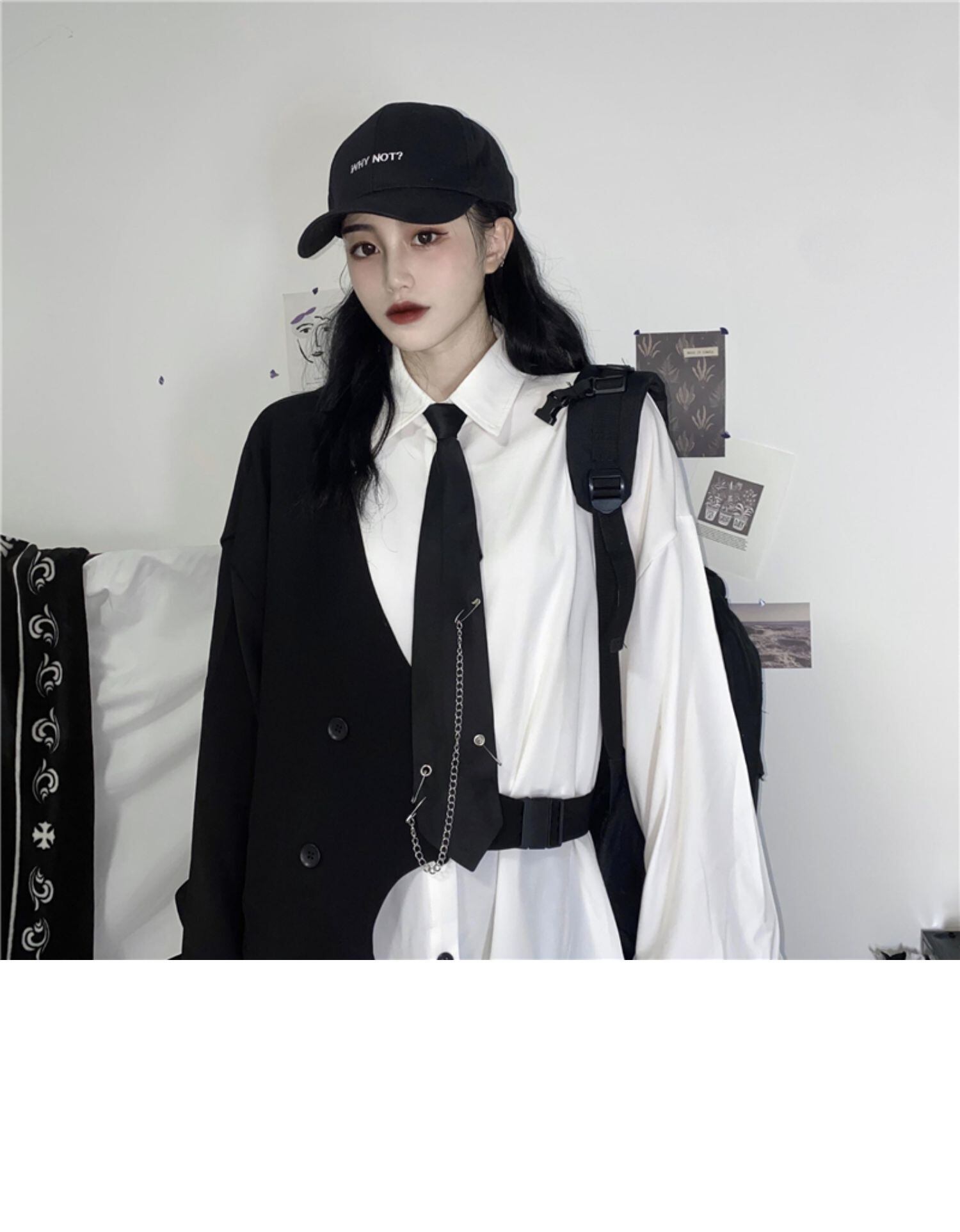 シャツ レディース秋物韓国ファッショントレンドスタンダードルーズトップス ロング レトロ オータム ステッチ スタイル 長袖 デーモン46634907600