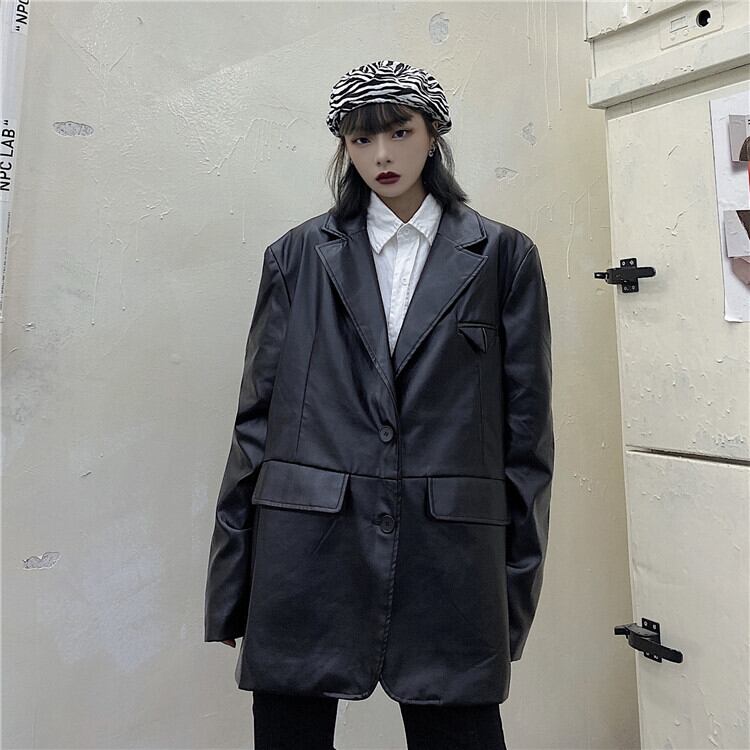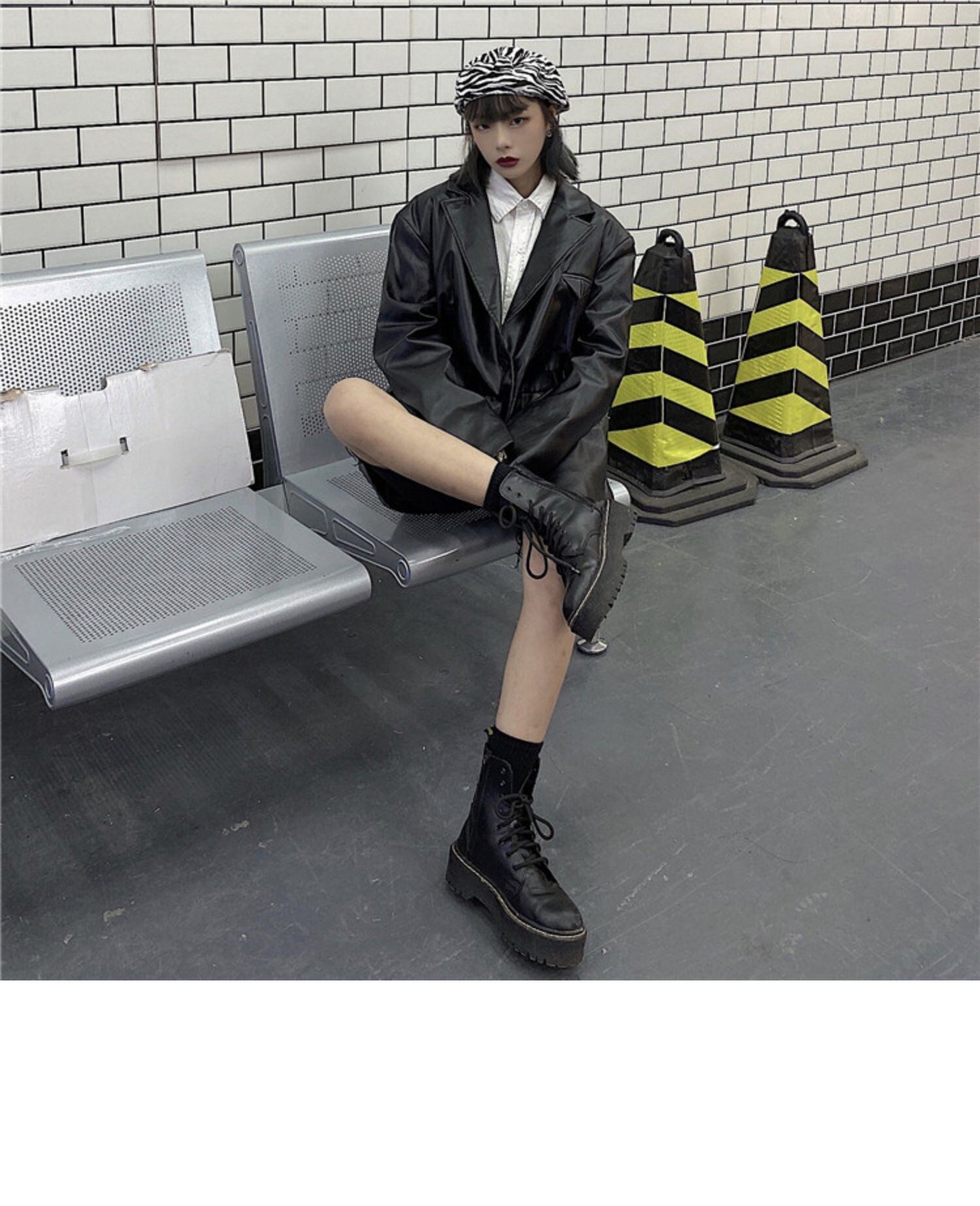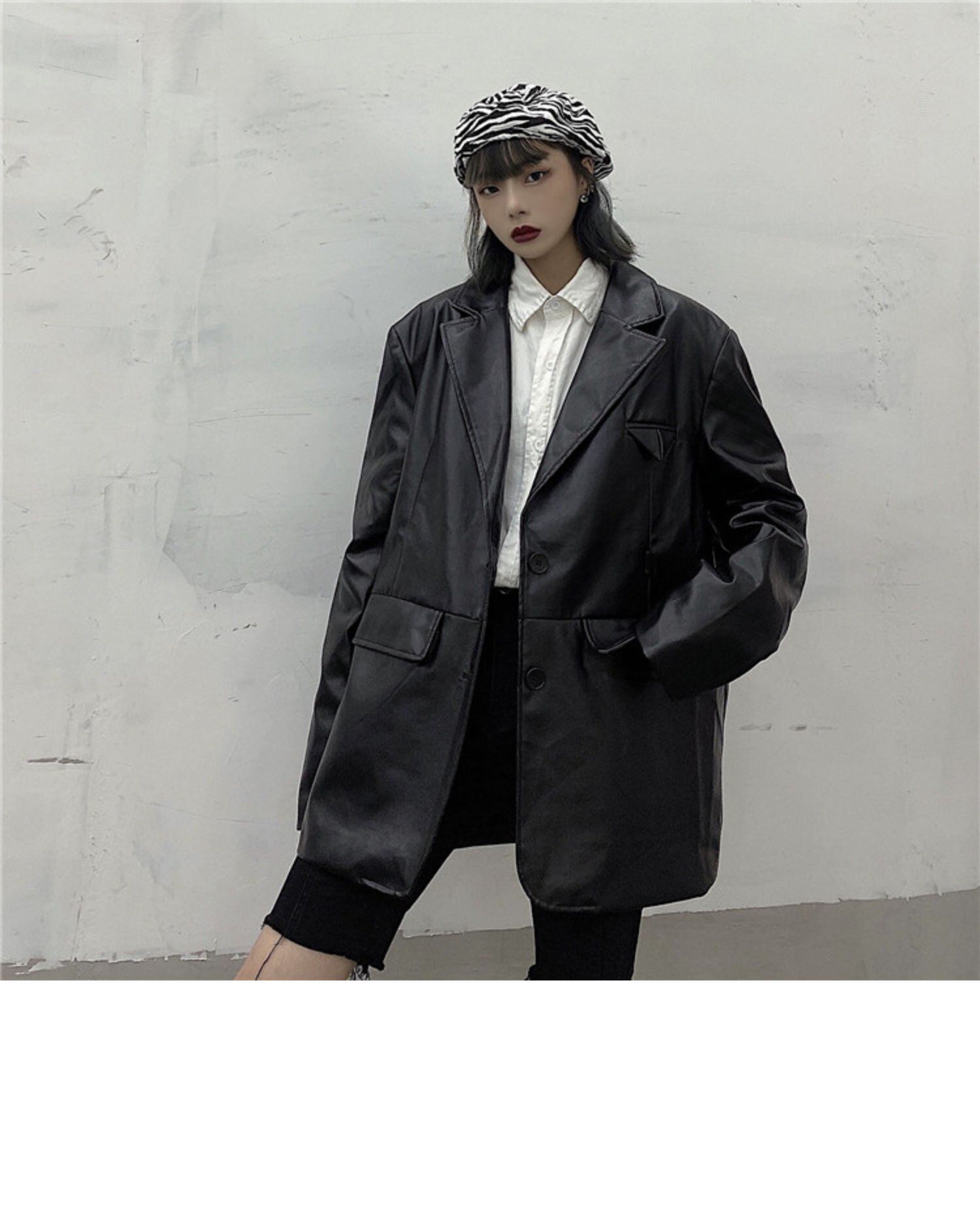 レザー秋物韓国ファッショントレンドスタンダードブラックジャケット ルーズカジュアル レトロ オータム ボーイズ スタイル デーモン54461384815