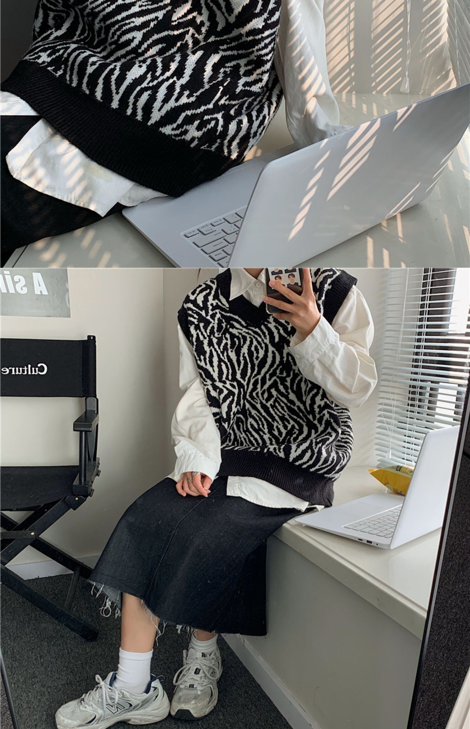 色:ゼブラ柄ベスト,白のシャツ