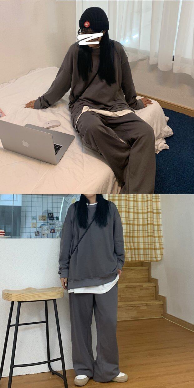 秋物レディース韓国ファッショントレンドルーズグレーセーター ジャケット パンツ ロング オータム ボーイズ スタイル 長袖 デーモン59341361729