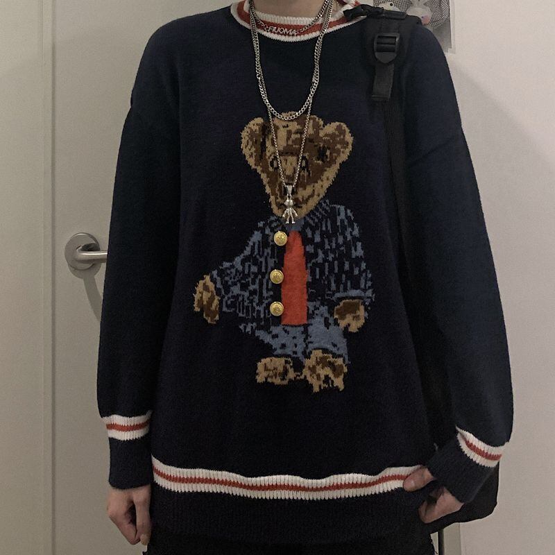 秋物レディース韓国ファッショントレンドスタンダードルーズニットセーター ジャケット ロング レトロ オータム ボーイズ スタイル 長袖 デーモン36800752133