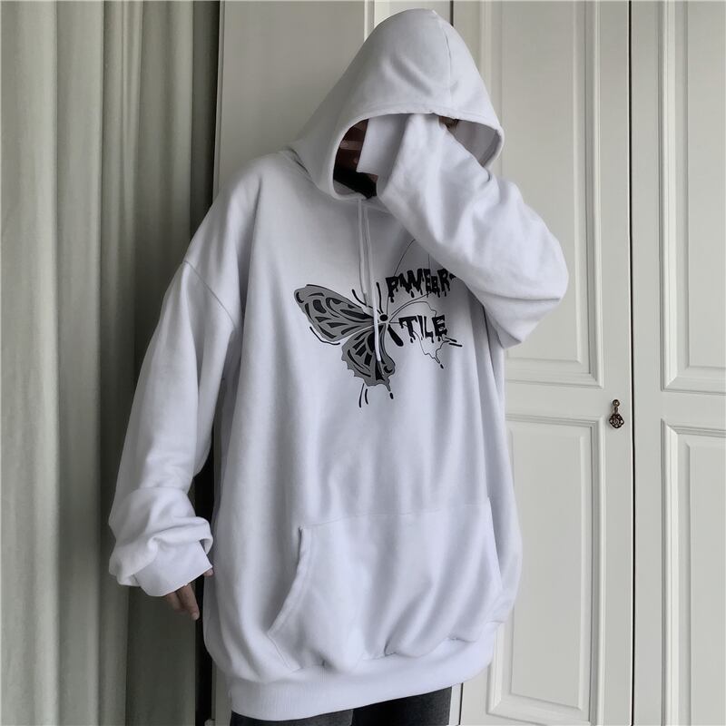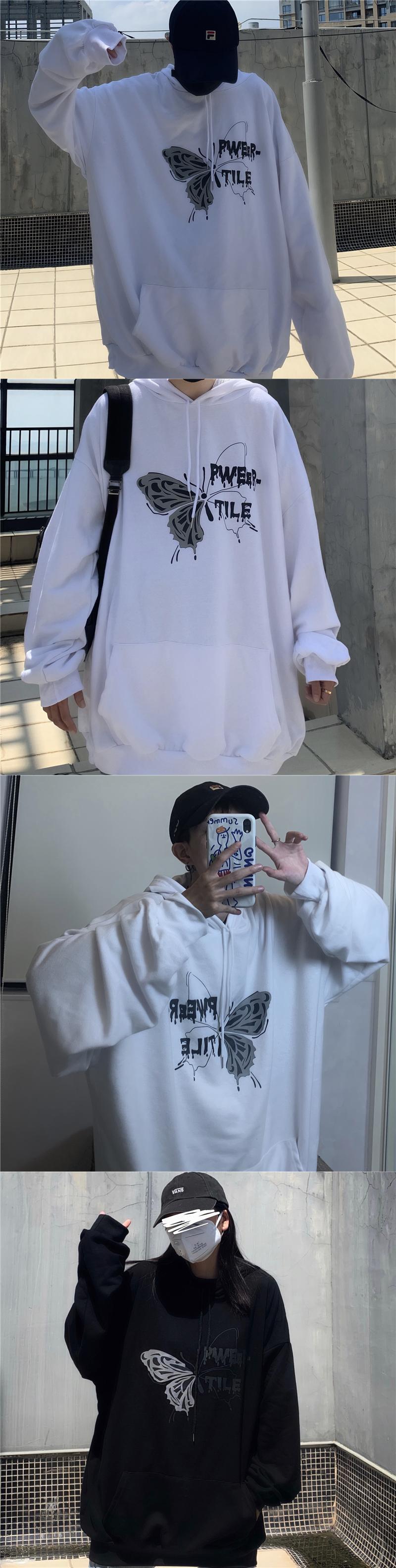 秋物ジャケット レディース韓国ファッショントレンドルーズブラックButterflyデザイン フードセーター ロング オータム ボーイズ スタイル 長袖 デーモン90482436743