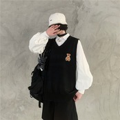 トレンドレディース韓国ファッション秋物ニットセーター スタンダードノースリーブルーズジャケット レトロ オータム スタイル デーモン43345421224