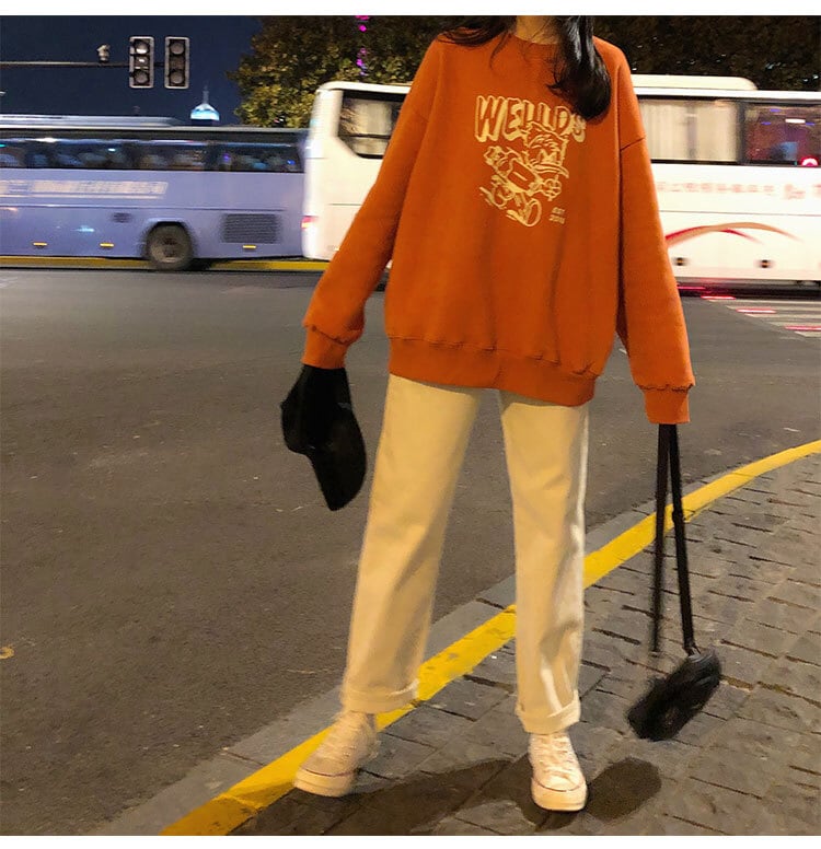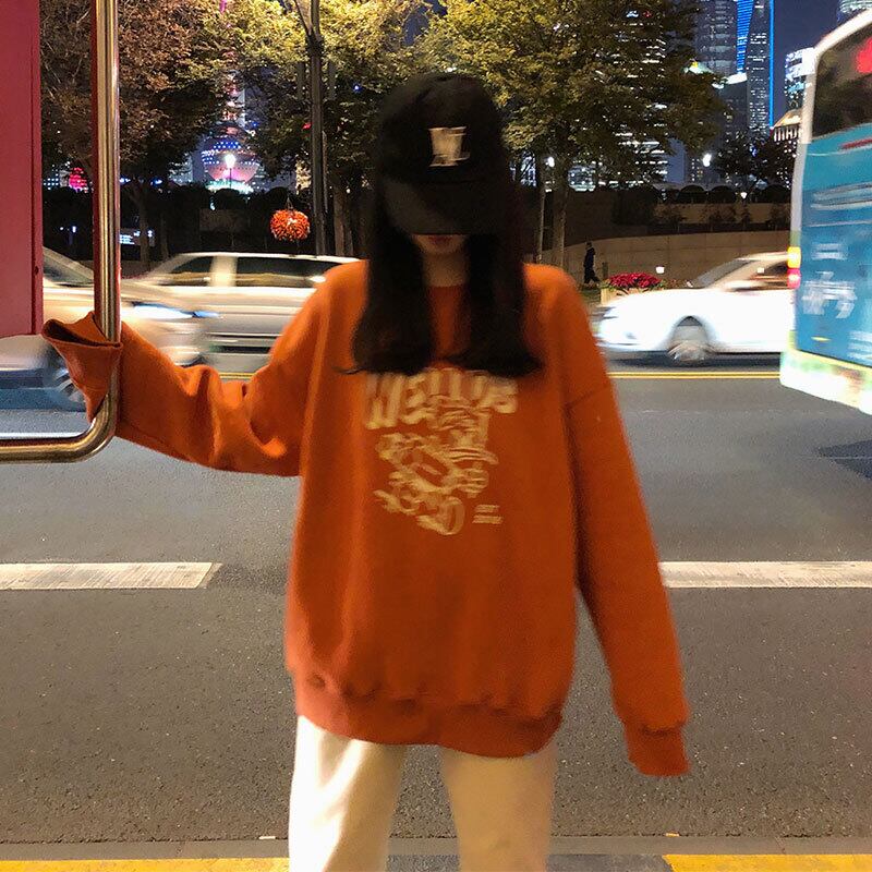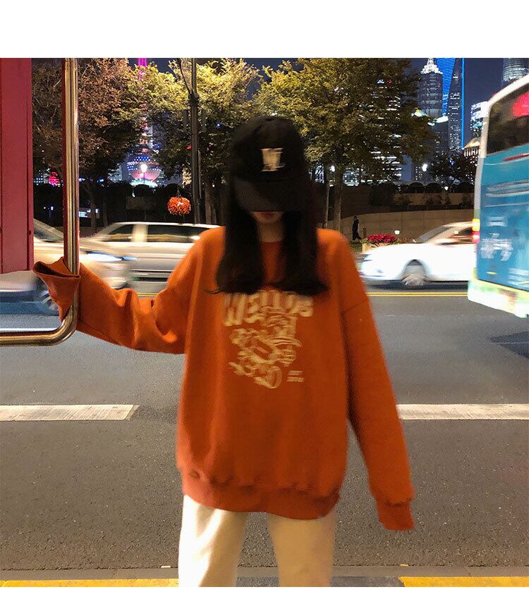 セーター 秋物ウィンター韓国ファッショントレンドプリント柄ラウンドネックルーズヴィンテージトップス ロング 原宿 オータム 冬物 Oネック ビンテージ スタイル 長袖 デーモン10042231172