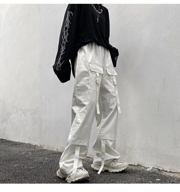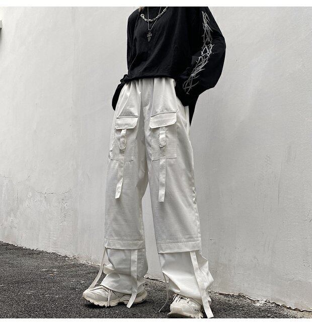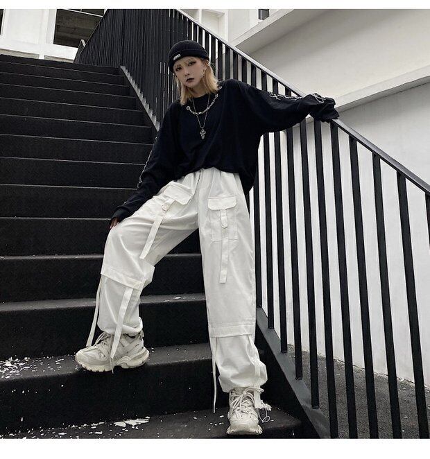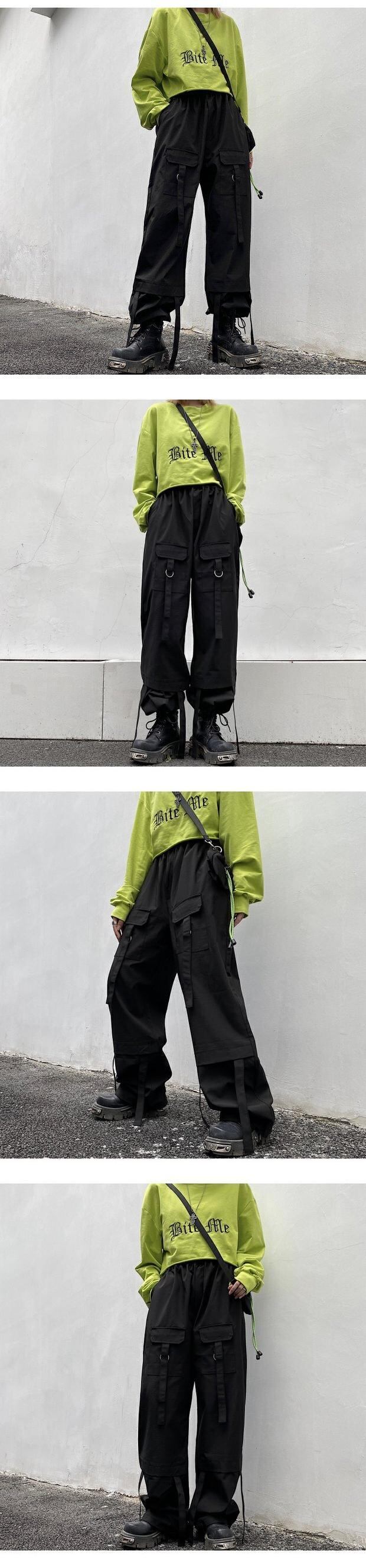パンツレディース韓国ファッショントレンドポケットハイウェストウェストルーズ薄手カジュアルパンツ スタイル ウエスト デーモン96453291852