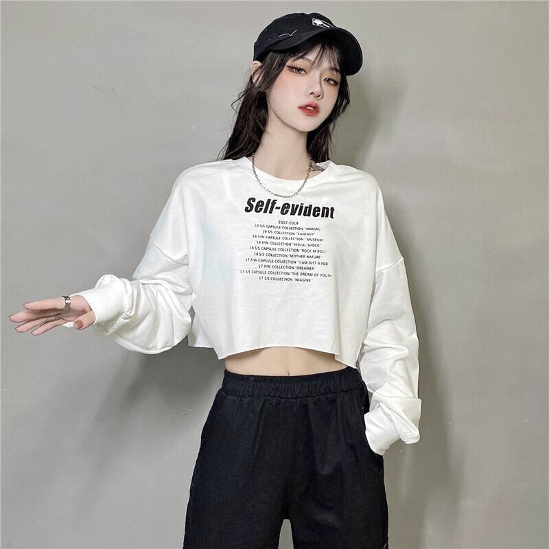 セーター レディース秋物トレンド韓国ファッションプリントトップス ブラックルーズラウンドネックジャケット ロング オータム Oネック スタイル 長袖 デーモン17961583621