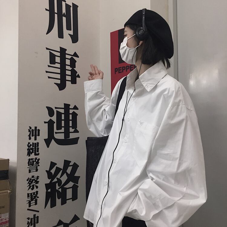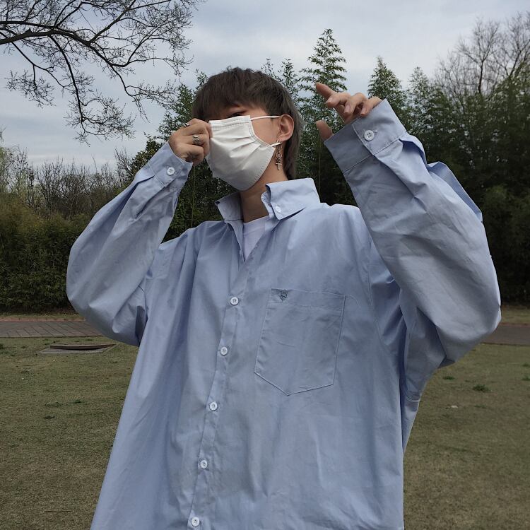 シャツ 秋物韓国ファッションスタンダード刺繍ソリッド カラースタイルルーズトップス ロング レトロ オータム ソリッドカラー ボーイズ 長袖 デーモン98267638924