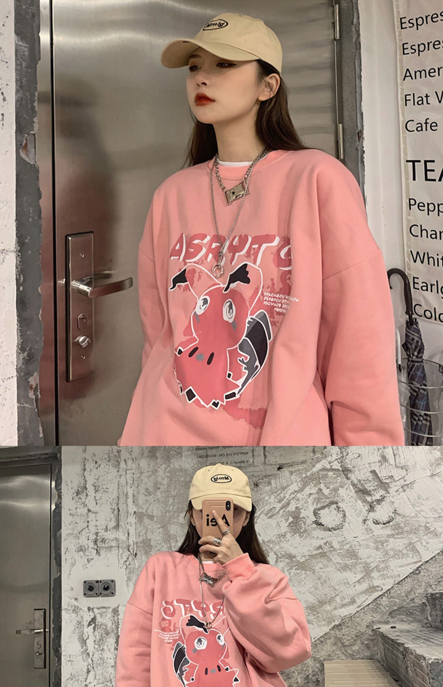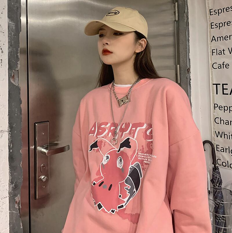 秋物ウィンターセーター レディース韓国ファッショントレンドプリントルーズ厚みトップス ロング オータム 冬物 ボーイズ スタイル 長袖 デーモン20929115402
