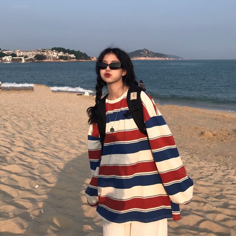 セーター レディース秋物韓国ファッショントレンドスタイルストライプジャケット ルーズプルオーバー トップス ロング オータム ボーイズ 長袖 デーモン59905005485