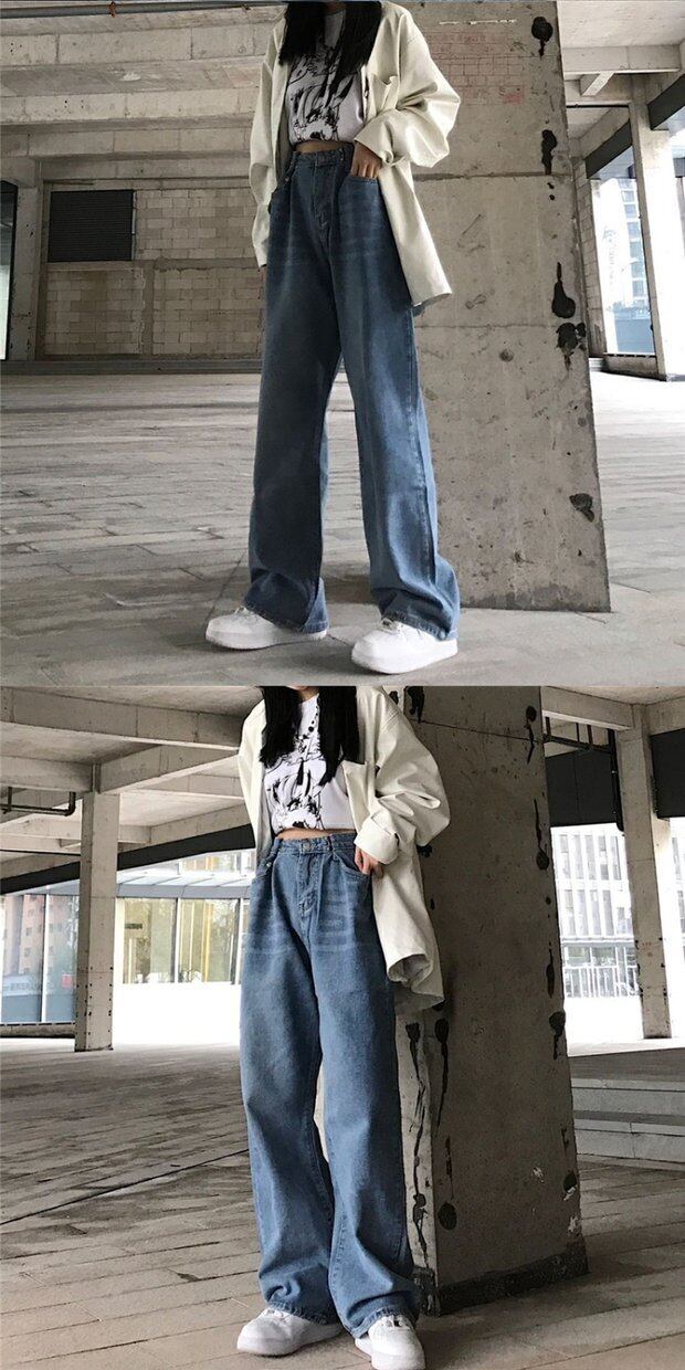 ウェストジーンズ レディース韓国ファッショントレンドブルーパンツ ルーズ ボーイズ スタイル ウエスト デーモン91727372251