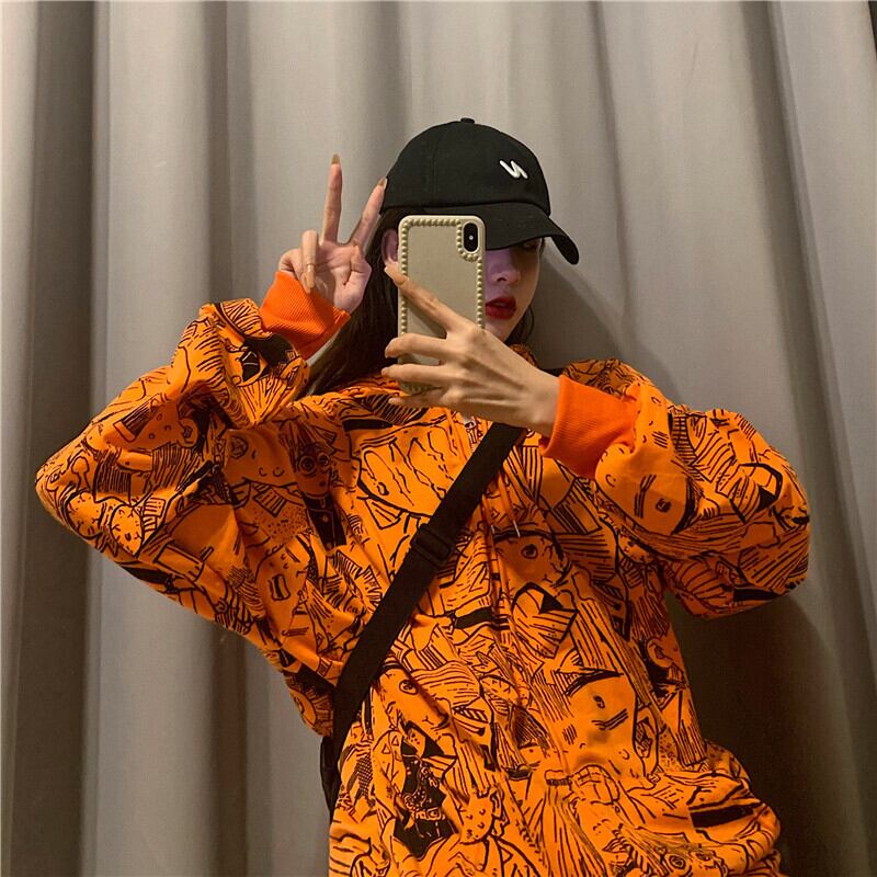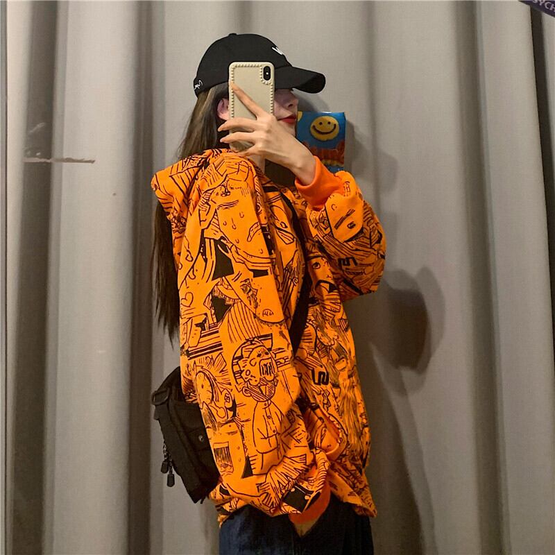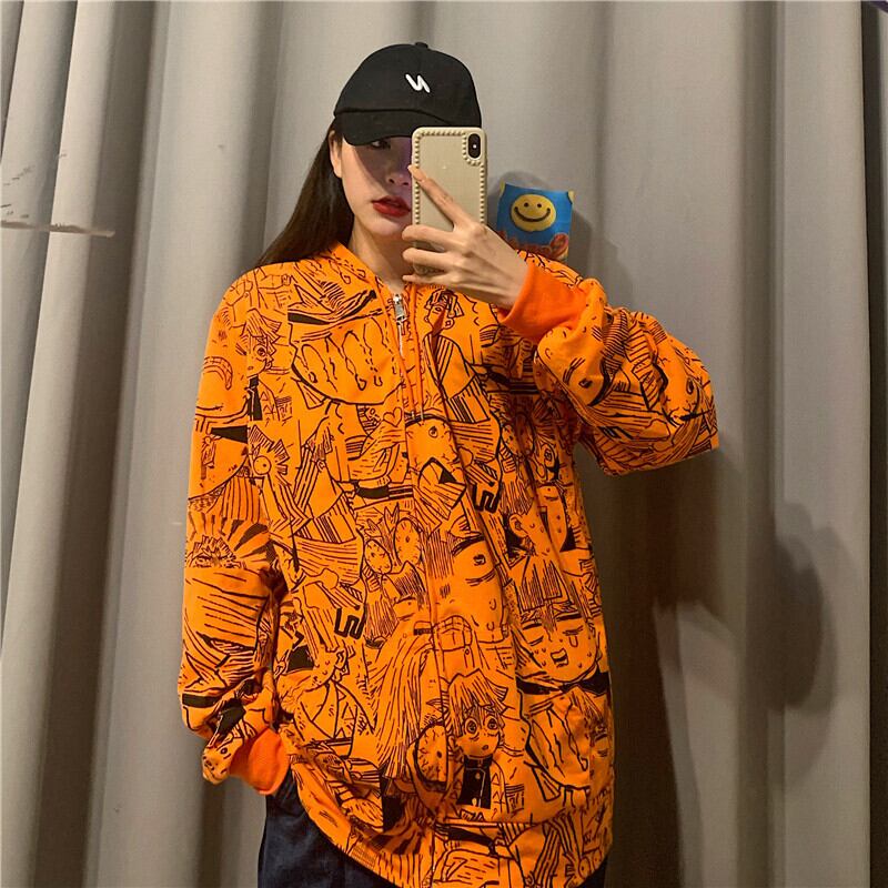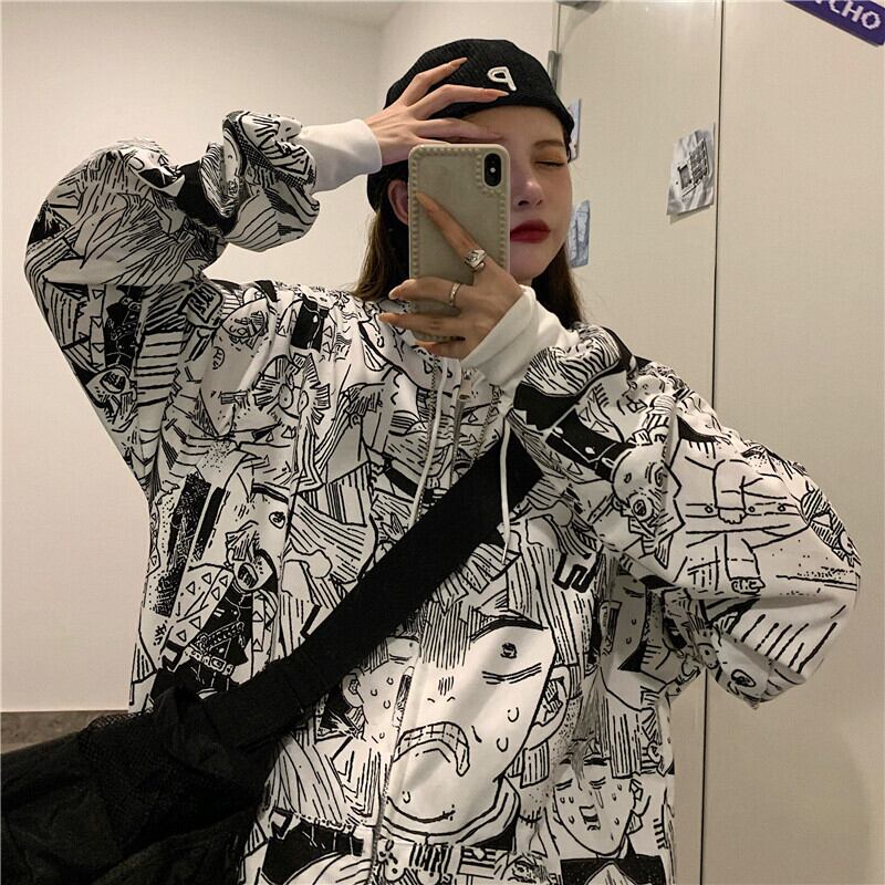 秋物ジャケット レディース韓国ファッショントレンドプリントセーター ルーズジッパーフードトップス ロング オータム スタイル 長袖 デーモン19907824966