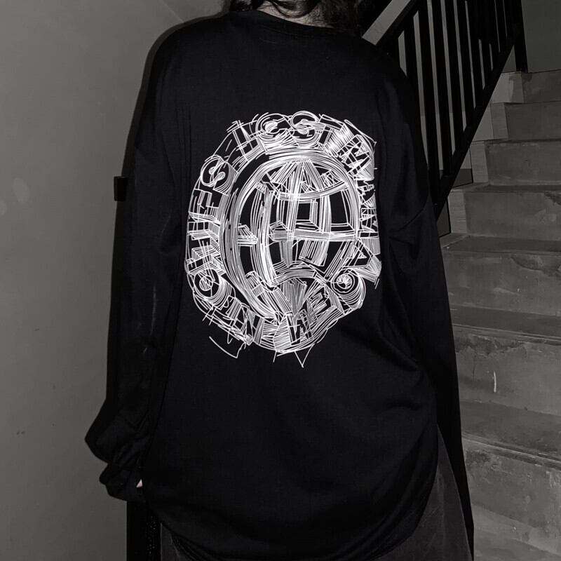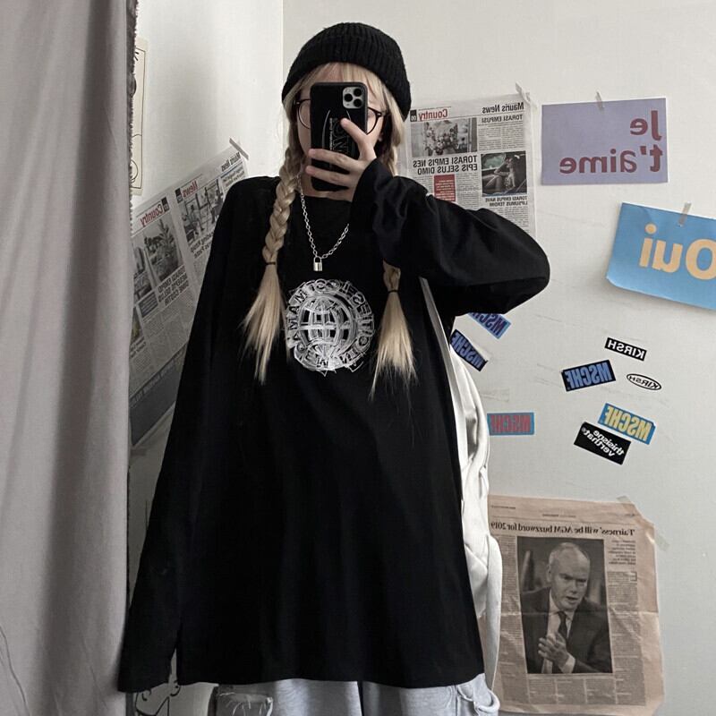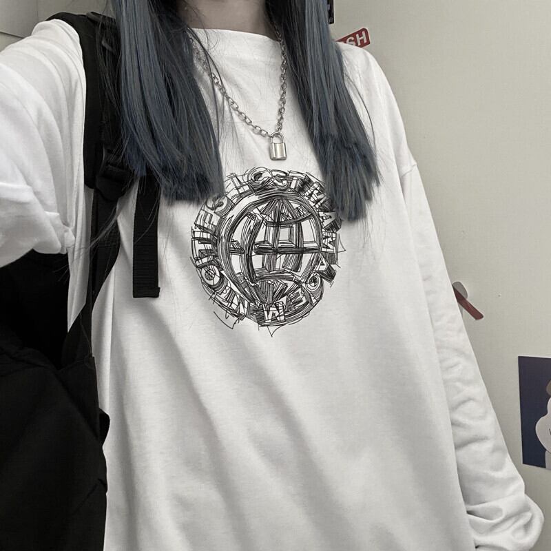 トップス 秋物韓国ファッショントレンドスタンダードプリントルーズTシャツ ロング レトロ オータム スタイル 長袖 デーモン58824241700