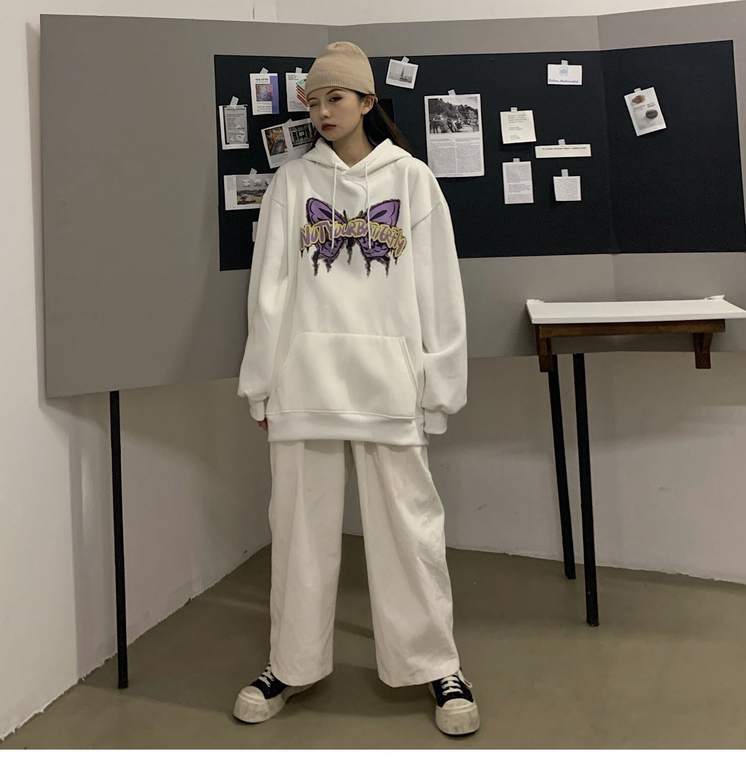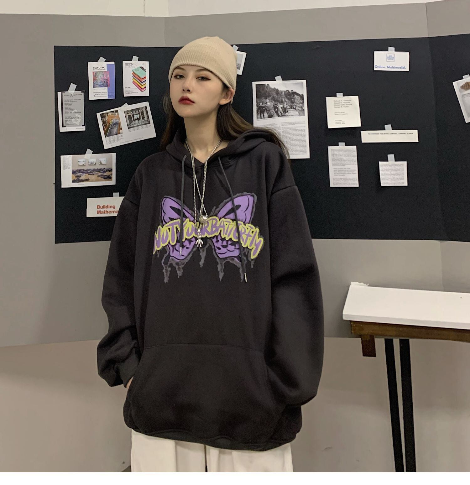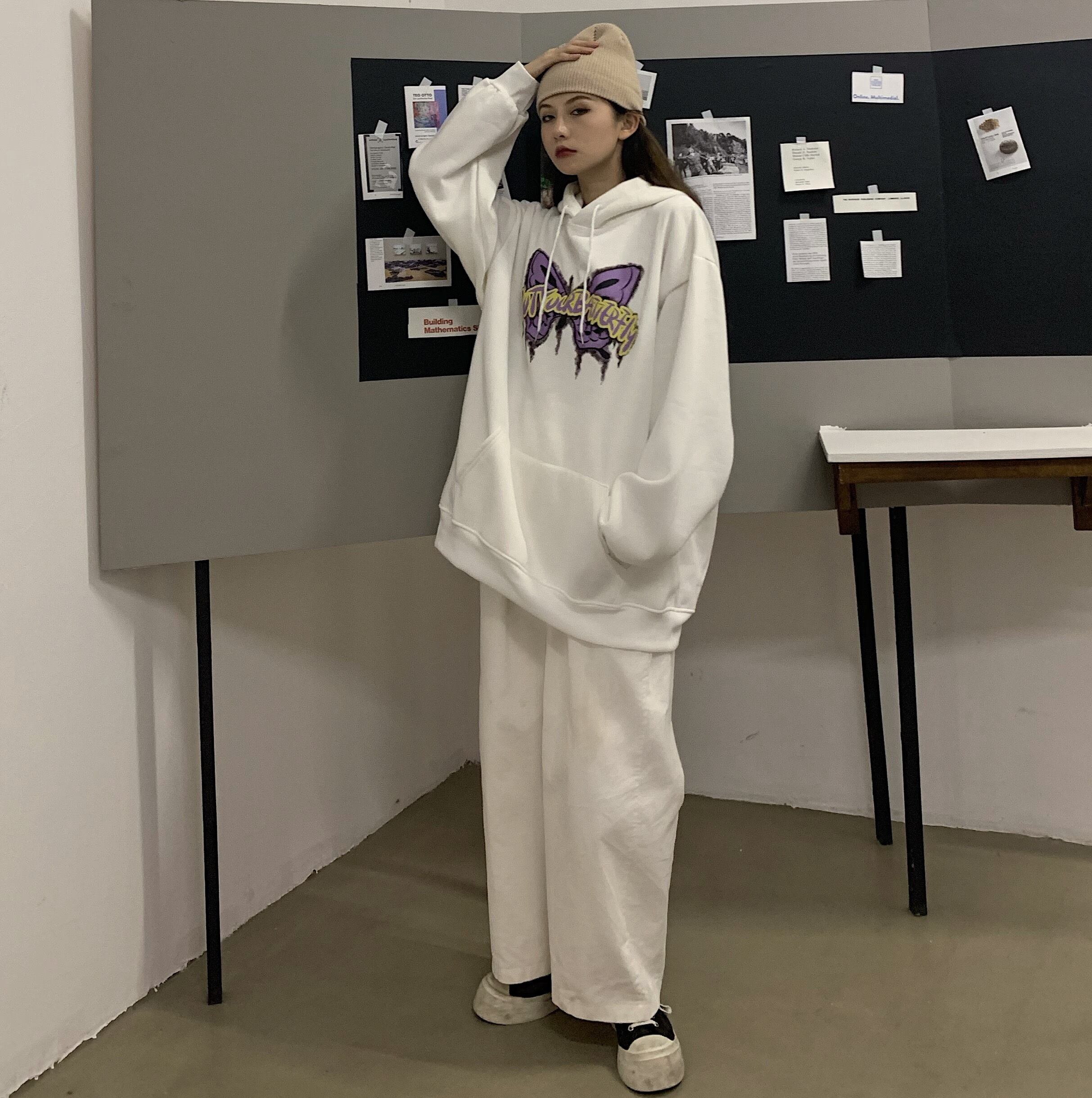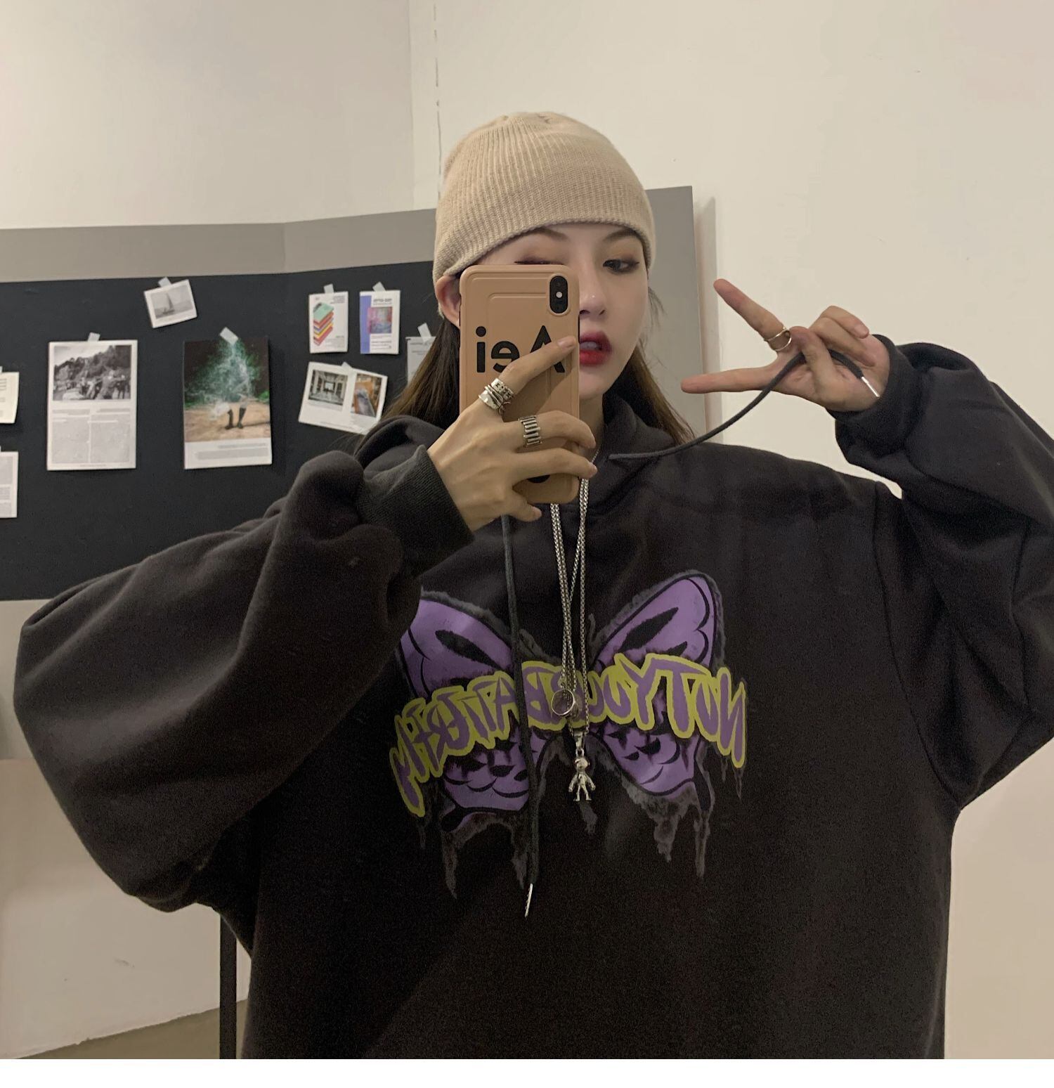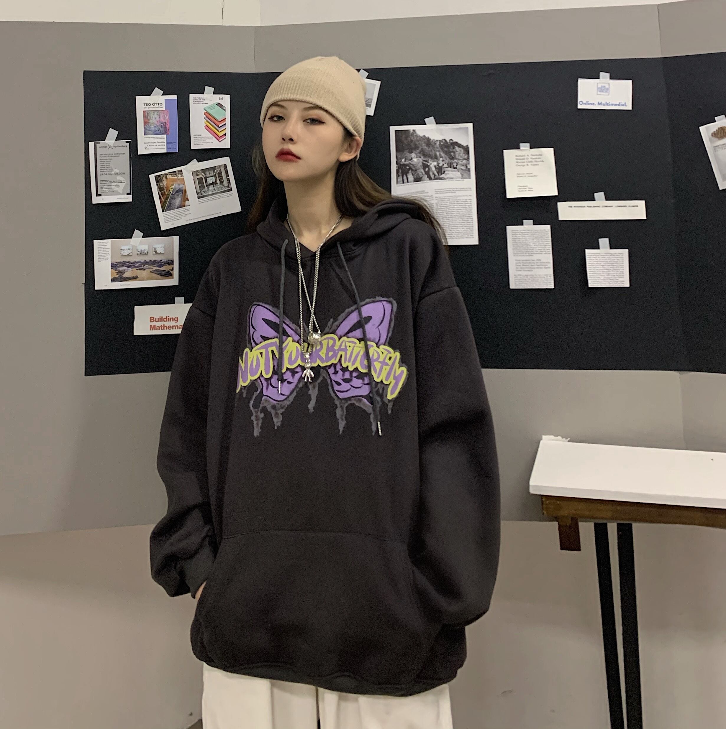 フードセーター レディース秋物ウィンター韓国ファッショントレンドButterflyデザイン プリント厚みルーズコート オータム 冬物 ボーイズ スタイル デーモン98393263206