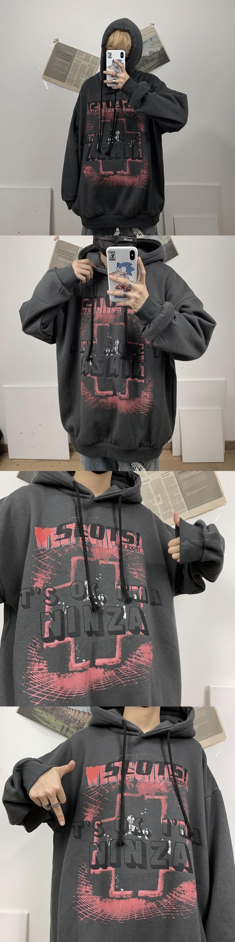 フードトップス レディース秋物ウィンター韓国ファッショントレンドスタイルプリント柄ルーズ厚みセーター 原宿 オータム 冬物 デーモン8968399275