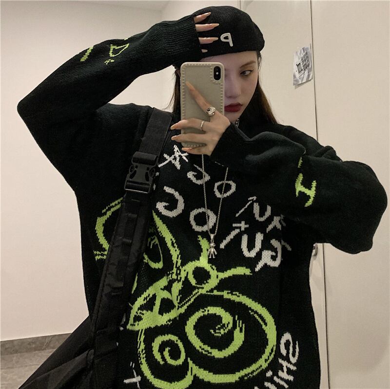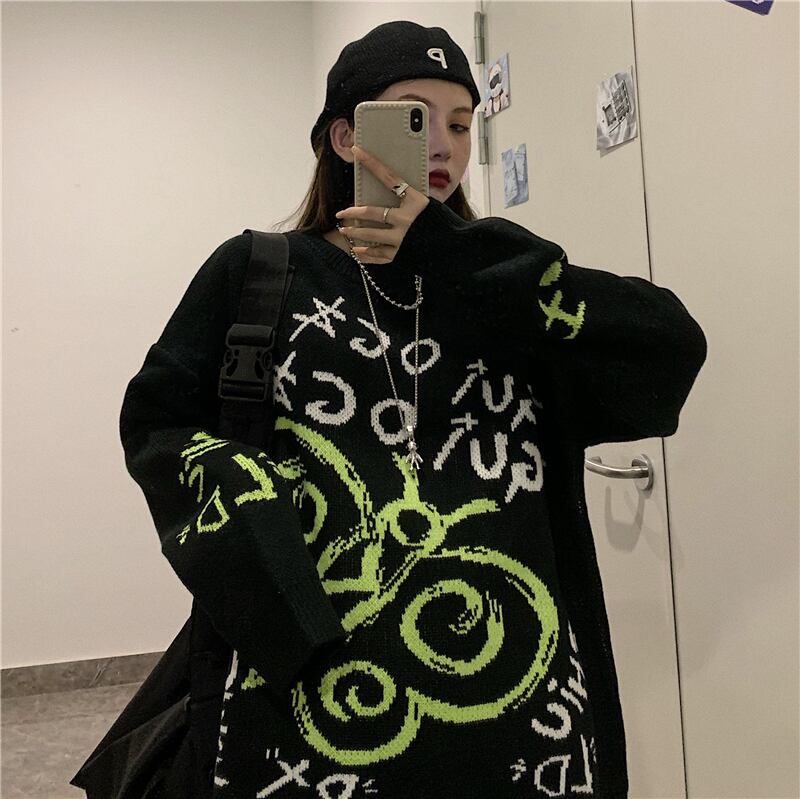 ニットジャケット レディース秋物韓国ファッショントレンドジャカードルーズラウンドネックウールセーター オータム Oネック ボーイズ スタイル デーモン75693345266