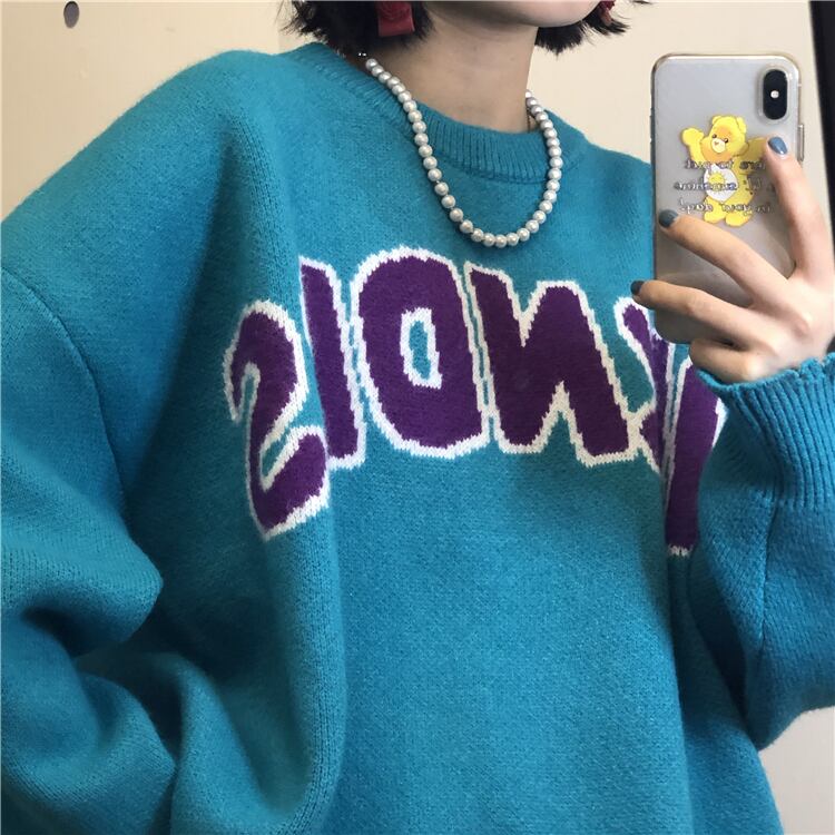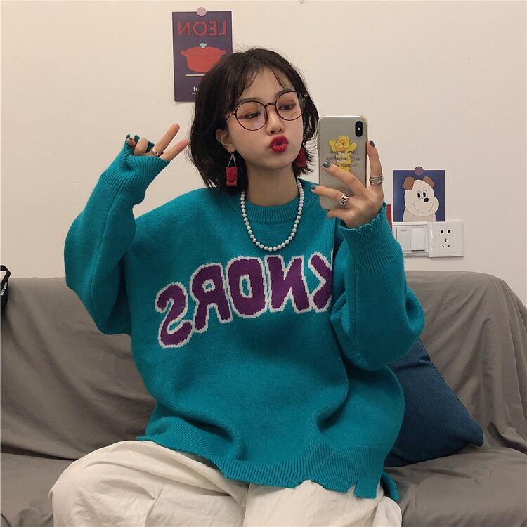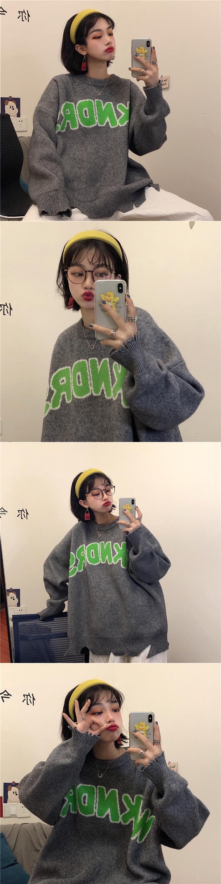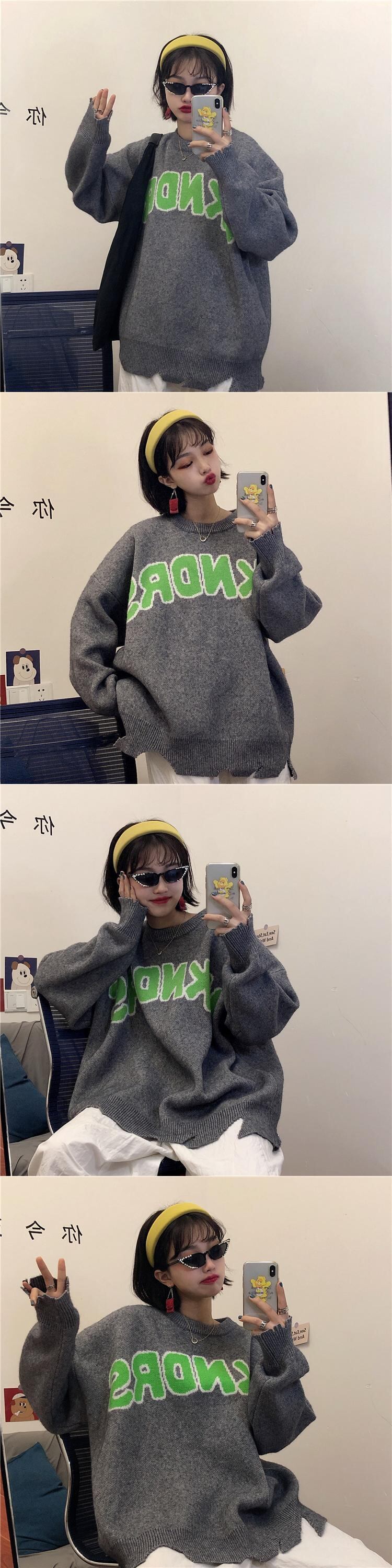 セーター レディース韓国ファッショントレンドジャカードルーズニットコート オータム 秋物 ウィンター 冬物 スタイル デーモン20651842977