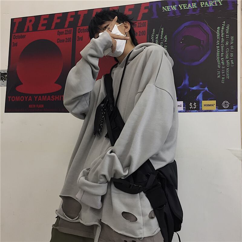フードトップス 秋物韓国ファッショントレンドコート ルーズセーター ロング オータム ボーイズ スタイル 長袖 デーモン2909273689