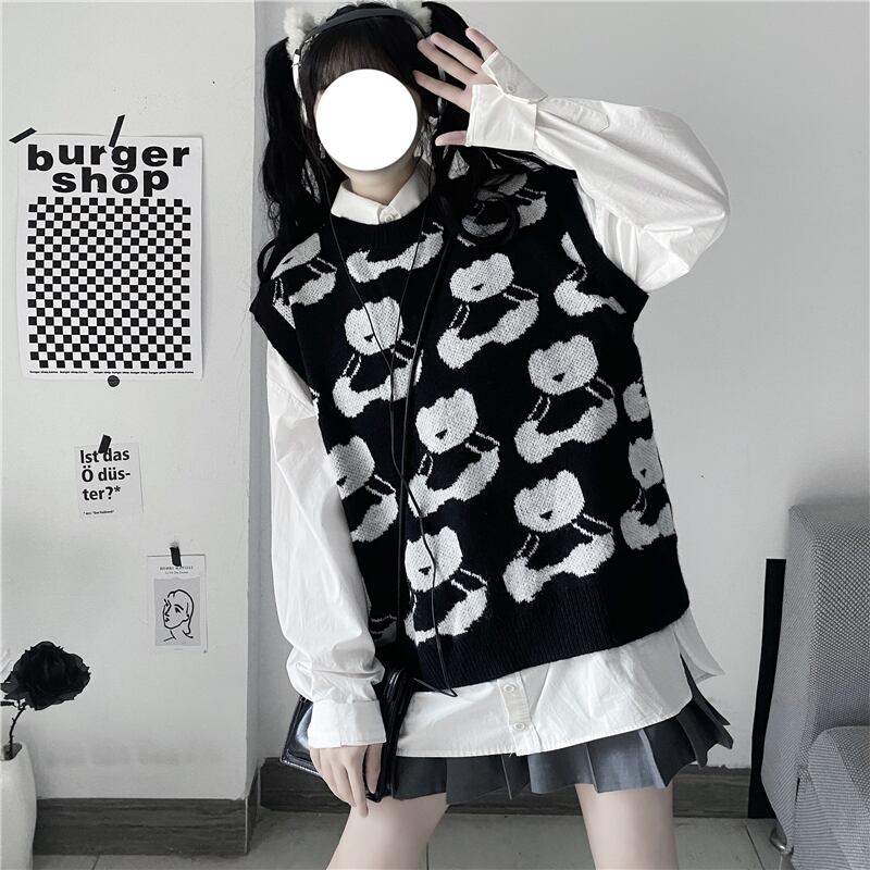 ニットセーター ジャケット レディース秋物ウィンター韓国ファッショントレンドルーズラウンドネックプルオーバー ノースリーブ オータム 冬物 Oネック スタイル ウエスト デーモン83683991213