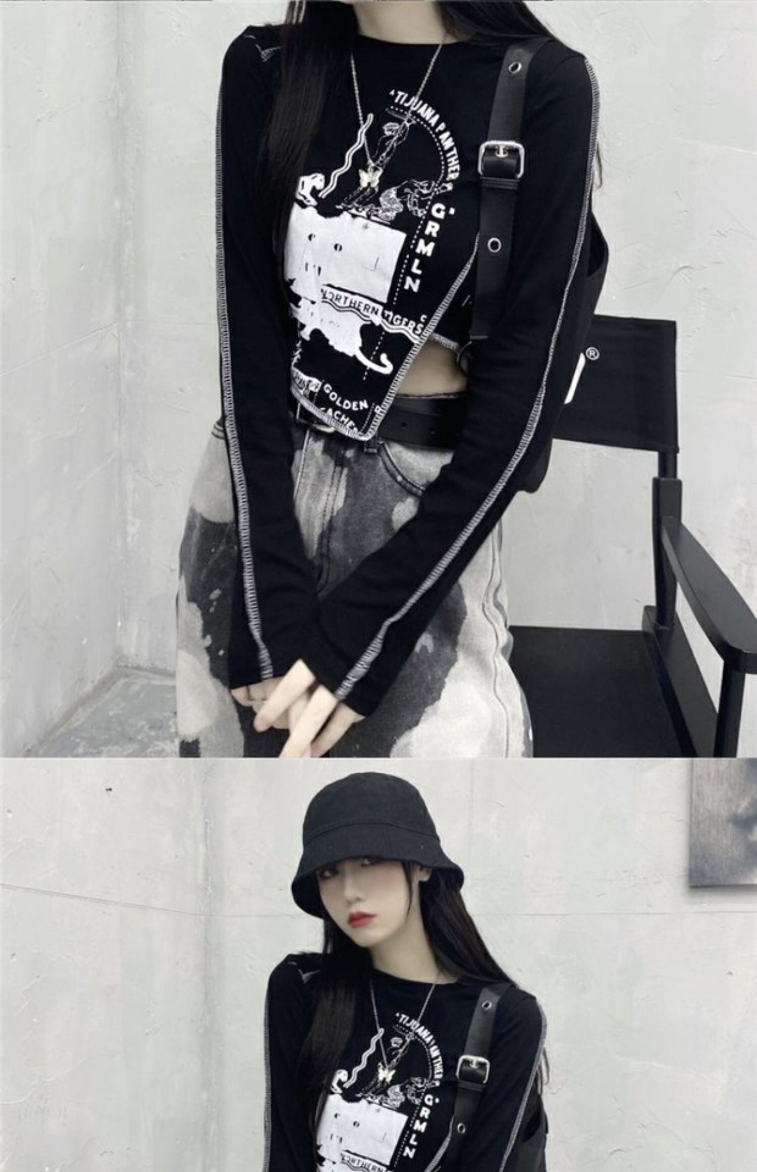 Tシャツシャツ ジャケット レディース秋物トレンド韓国ファッションプリントショートハイウェストウェストスリム長袖スリーブゆったり ロング オータム ボーイズ ウエスト デーモン69760153780