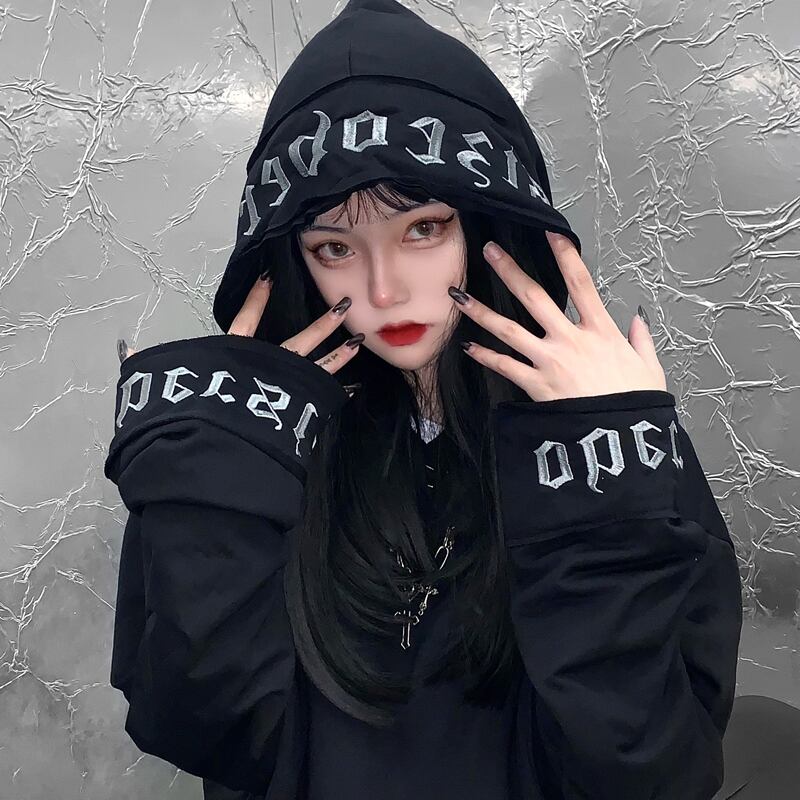 フードセーター レディース秋物韓国ファッショントレンドダークルーズトップス ロング オータム ボーイズ スタイル 長袖 デーモン27370061939