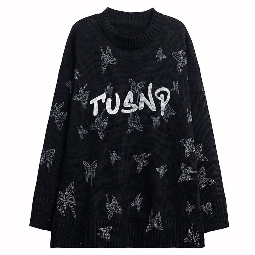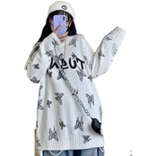 セーター レディース韓国ファッショントレンドスタンダードButterflyデザイン プリント柄ルーズニットコート レトロ オータム 秋物 ウィンター 冬物 スタイル デーモン91665509995