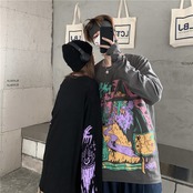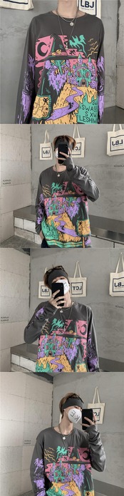 Tシャツ秋物韓国ファッショントレンドスタイルブラックルーズトップス ロング 原宿 オータム ボーイズ 長袖 デーモン48736943650