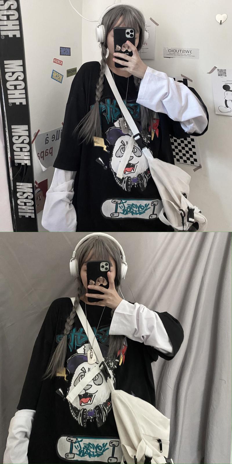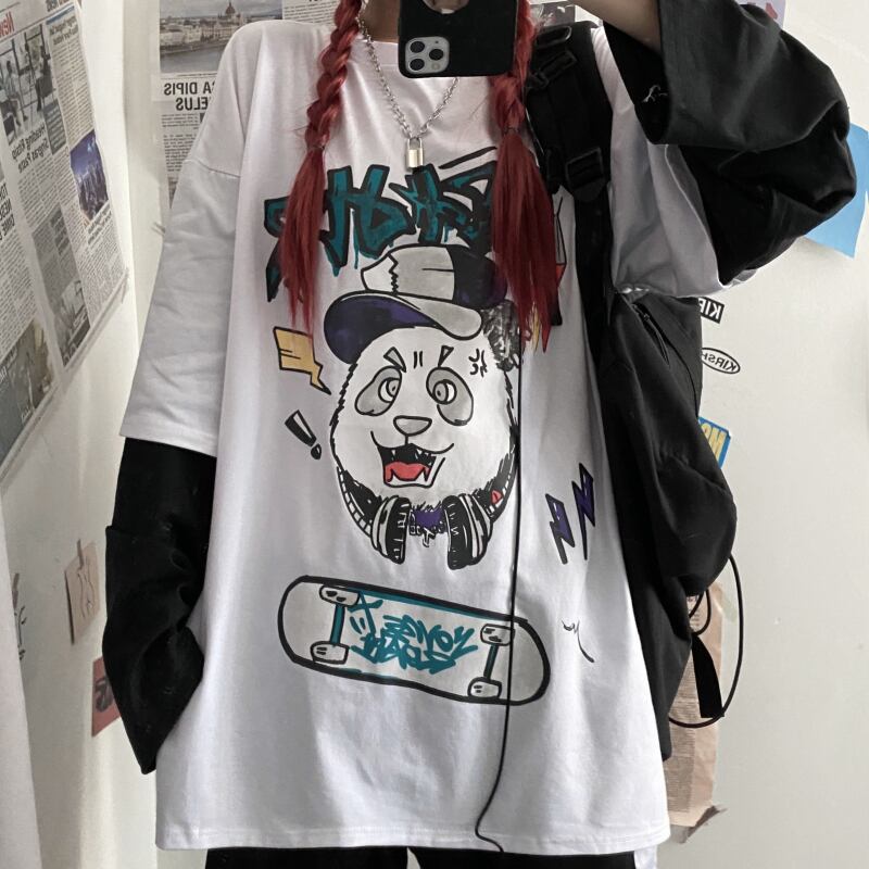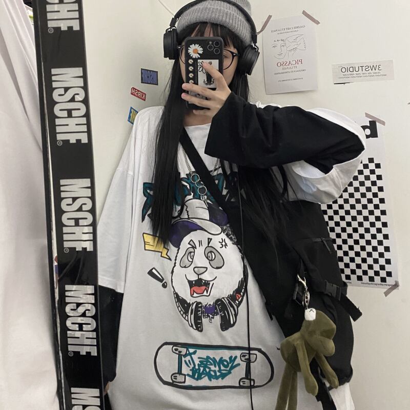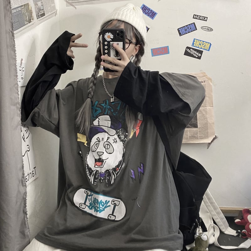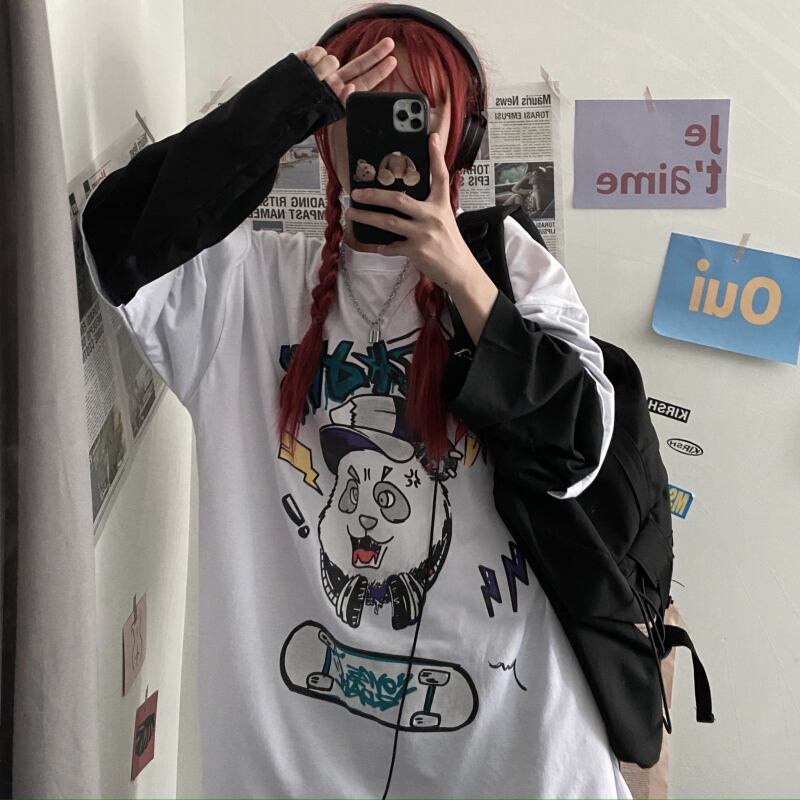 Tシャツシャツ 秋物韓国ファッショントレンドスタンダードプリントラウンドネックルーズ ロング レトロ オータム Oネック スタイル 長袖 デーモン4249731807
