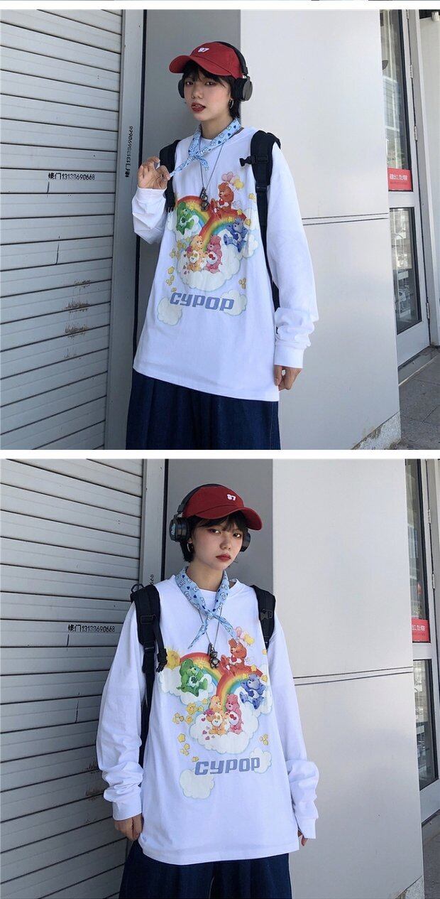 トップス レディース秋物韓国ファッショントレンドプリント柄Tシャツシャツ ルーズゆったり ロング オータム スタイル 長袖 デーモン73385959327