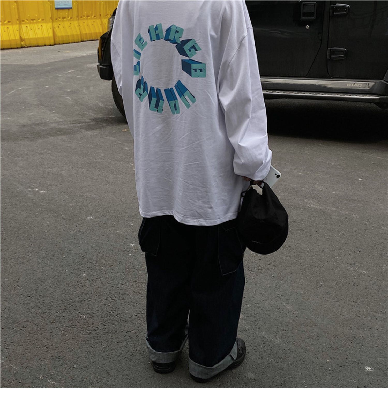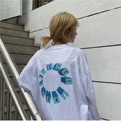 トップス レディース秋物トレンド韓国ファッションプリントホワイトゆったりルーズTシャツ ロング オータム 長袖 デーモン52567993590