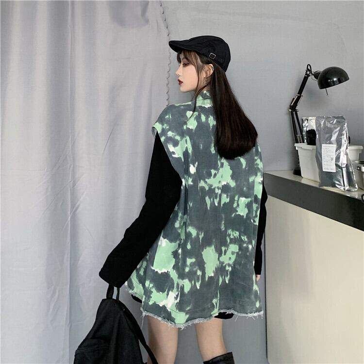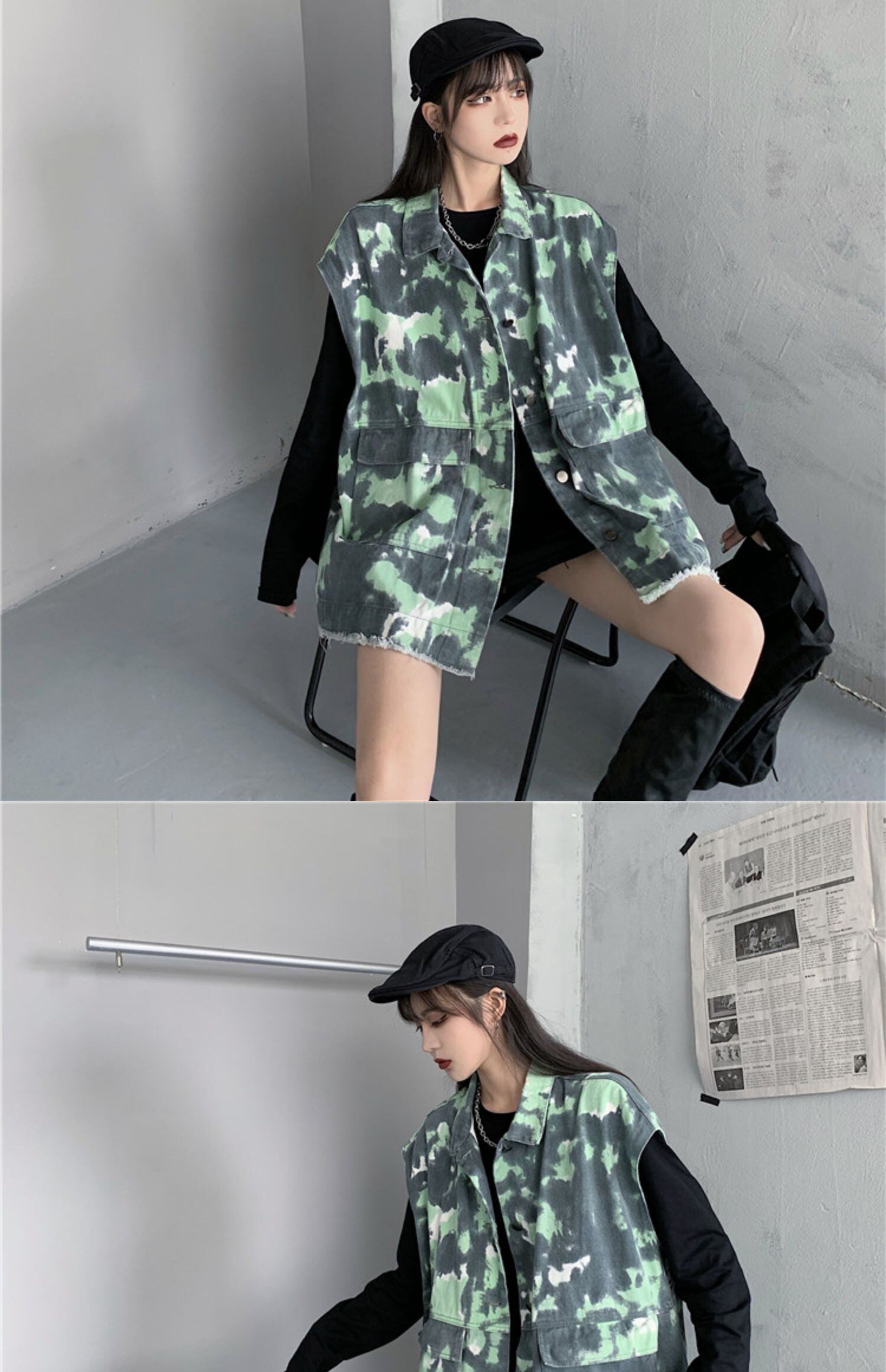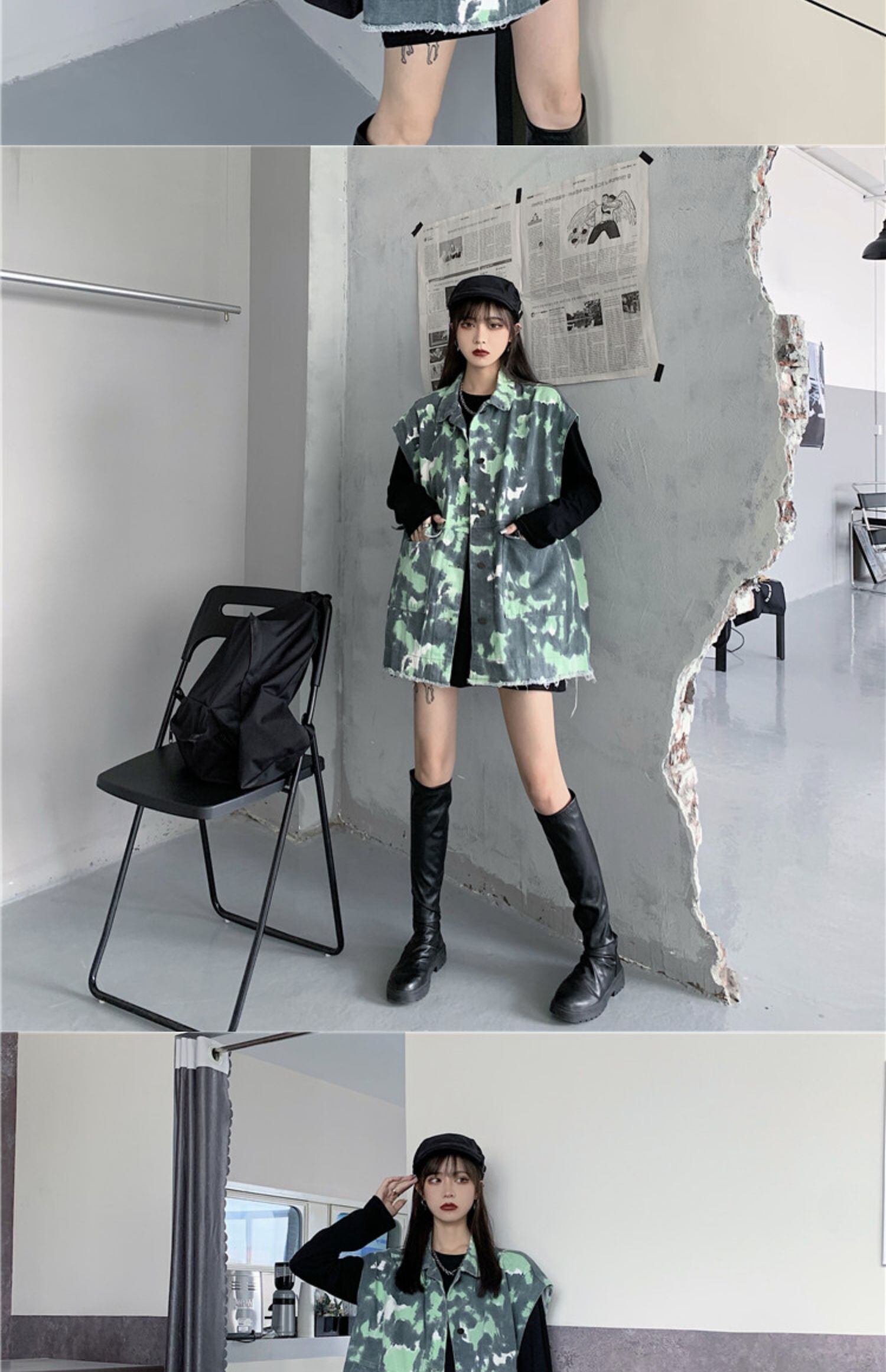 レディース秋物韓国ファッショントレンドカジュアル迷彩柄ノースリーブルーズジャケット オータム スタイル ウエスト デーモン98703190759