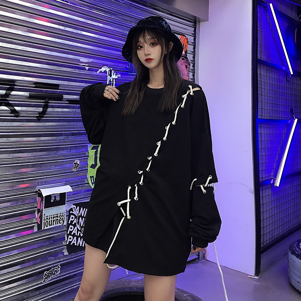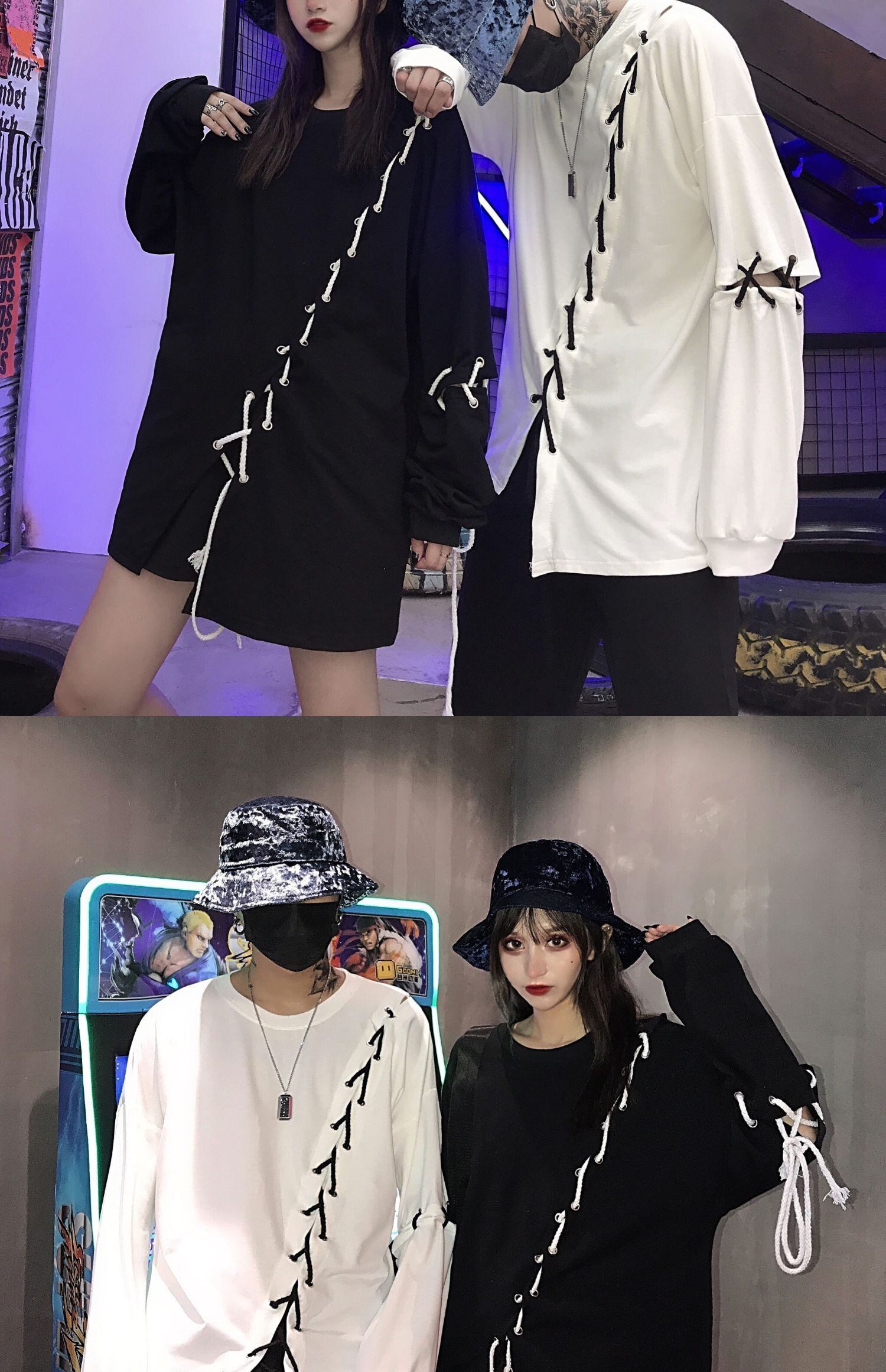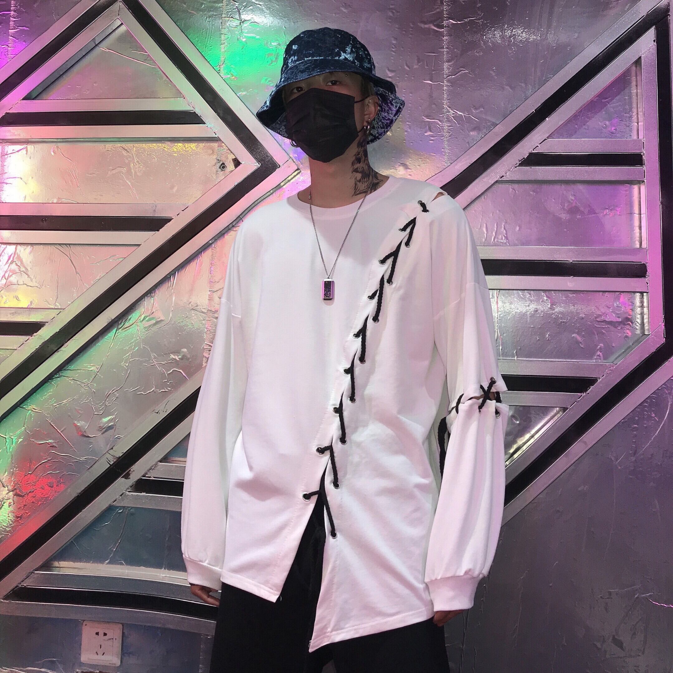 秋物トップス 韓国ファッショントレンドブラックスタイルルーズ長袖スリーブTシャツ ロング オータム ボーイズ デーモン18162340220