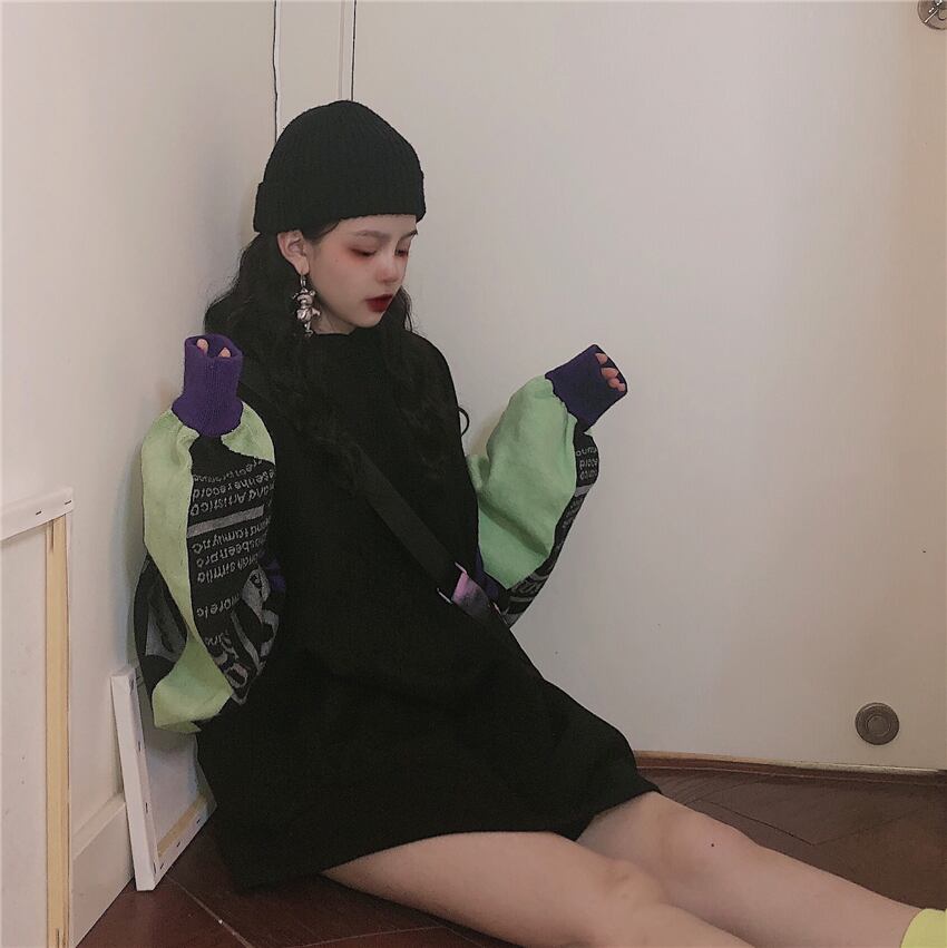 セーター レディース秋物韓国ファッショントレンドニットスリーブトップス ルーズプルオーバー ジャケット ロング オータム ステッチ ボーイズ 長袖 デーモン21818730219