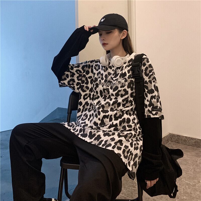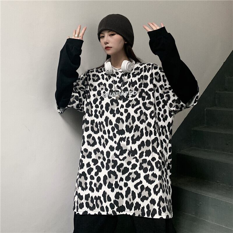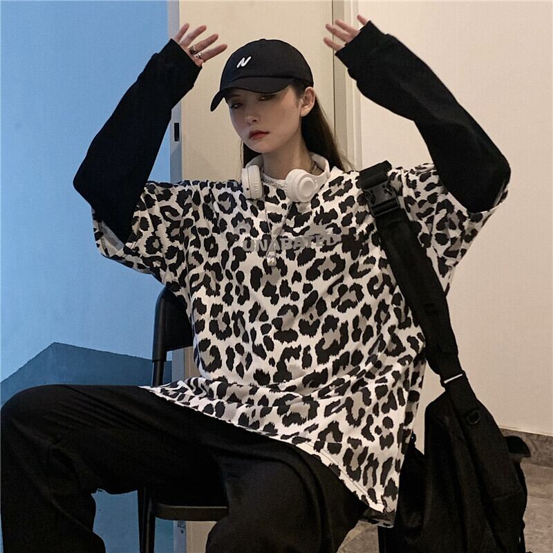 トップス 秋物韓国ファッショントレンドスタイルレオパードルーズラウンドネックTシャツ ロング 原宿 オータム Oネック 長袖 デーモン44250222120