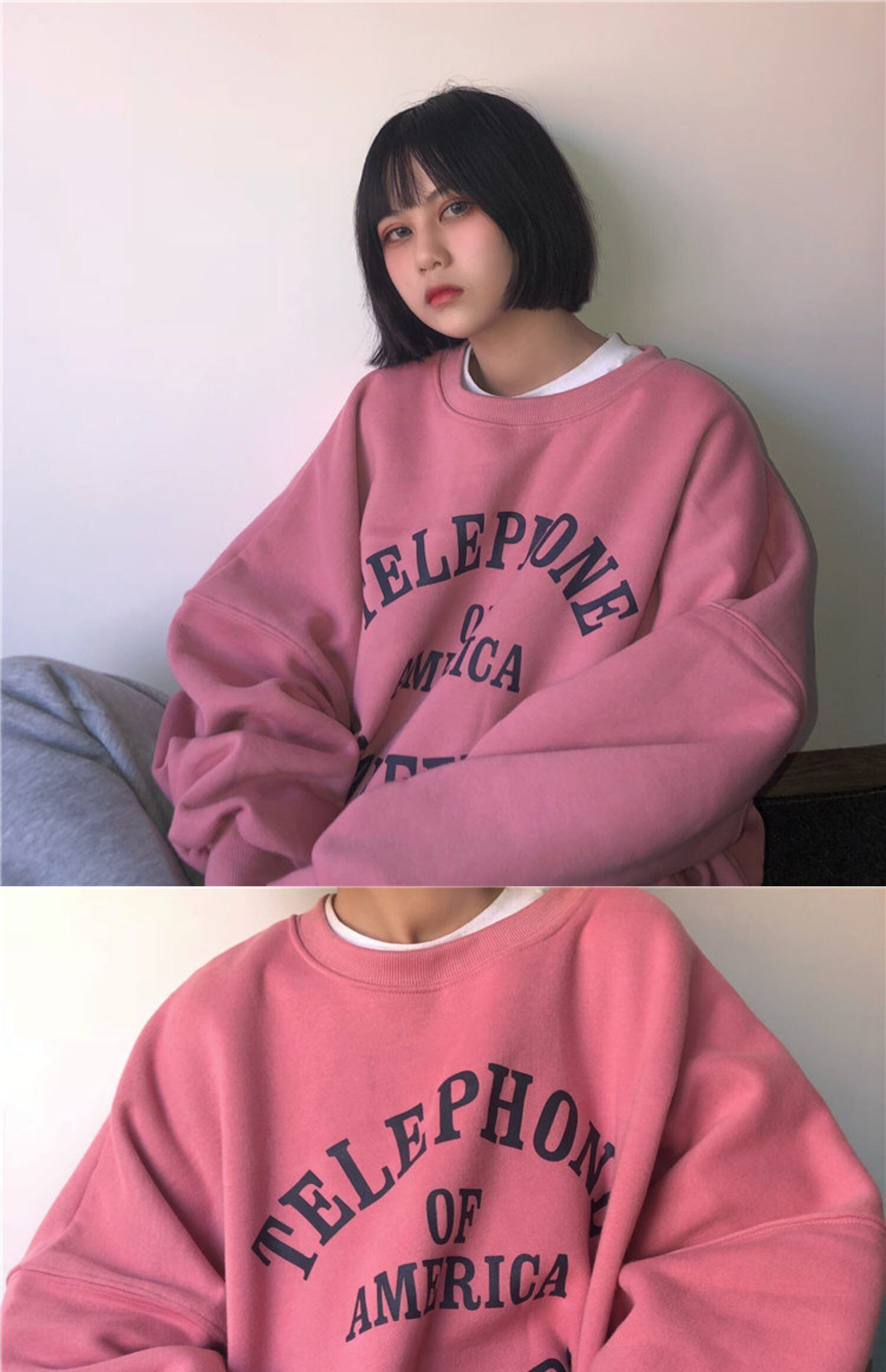 厚みセーター レディーストレンド韓国ファッションプリントジャケット ルーズ秋物 ピンク オータム スタイル デーモン65614748044