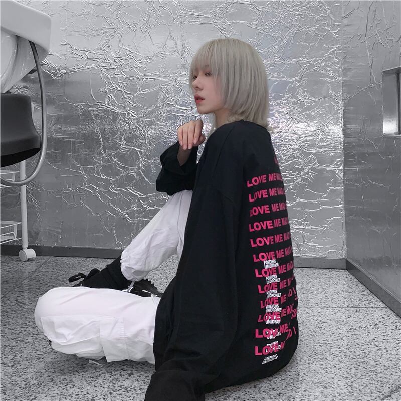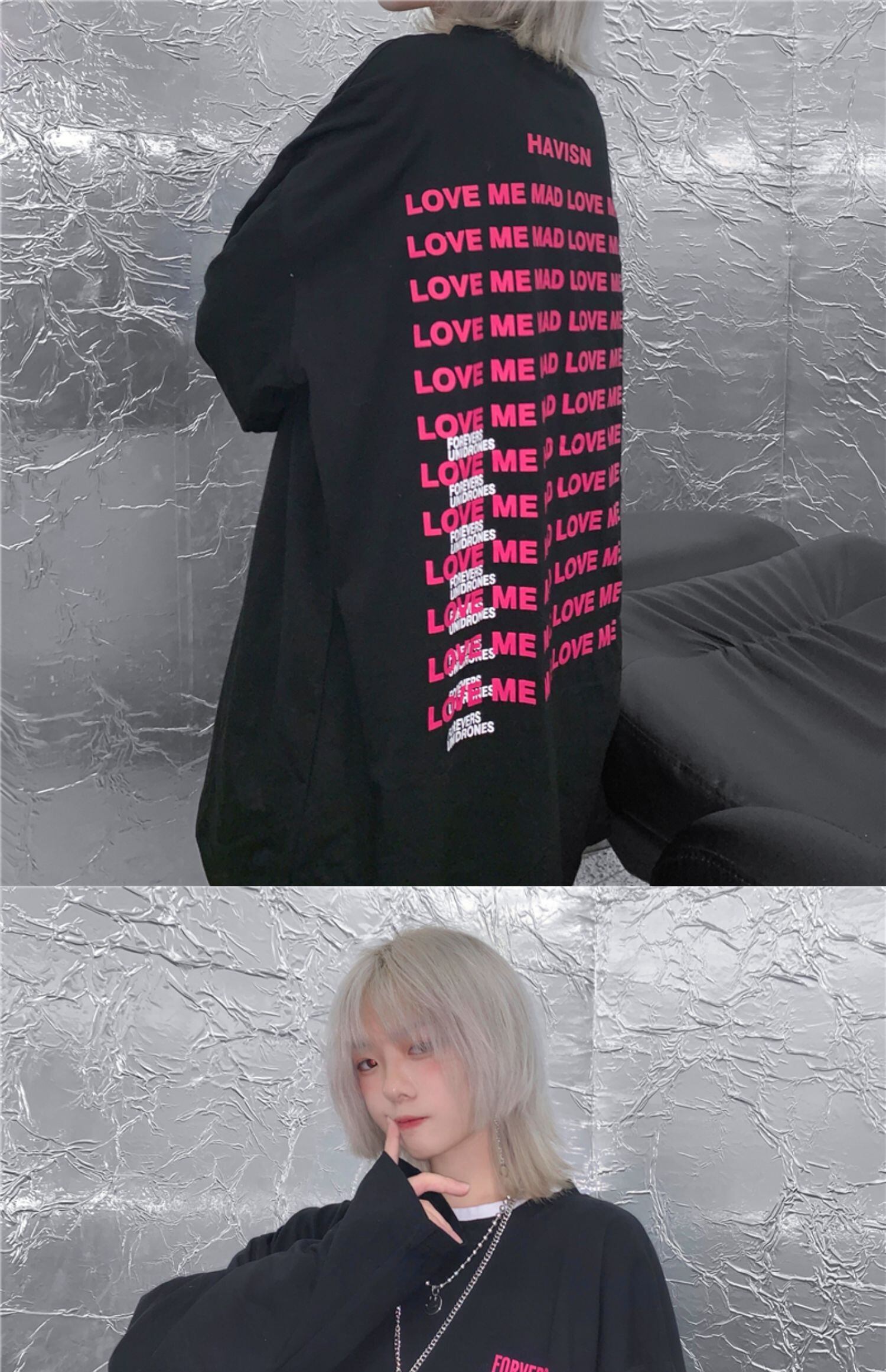 秋物トップス 韓国ファッショントレンドプリントブラックルーズTシャツ ロング オータム ボーイズ スタイル 長袖 デーモン34119215224