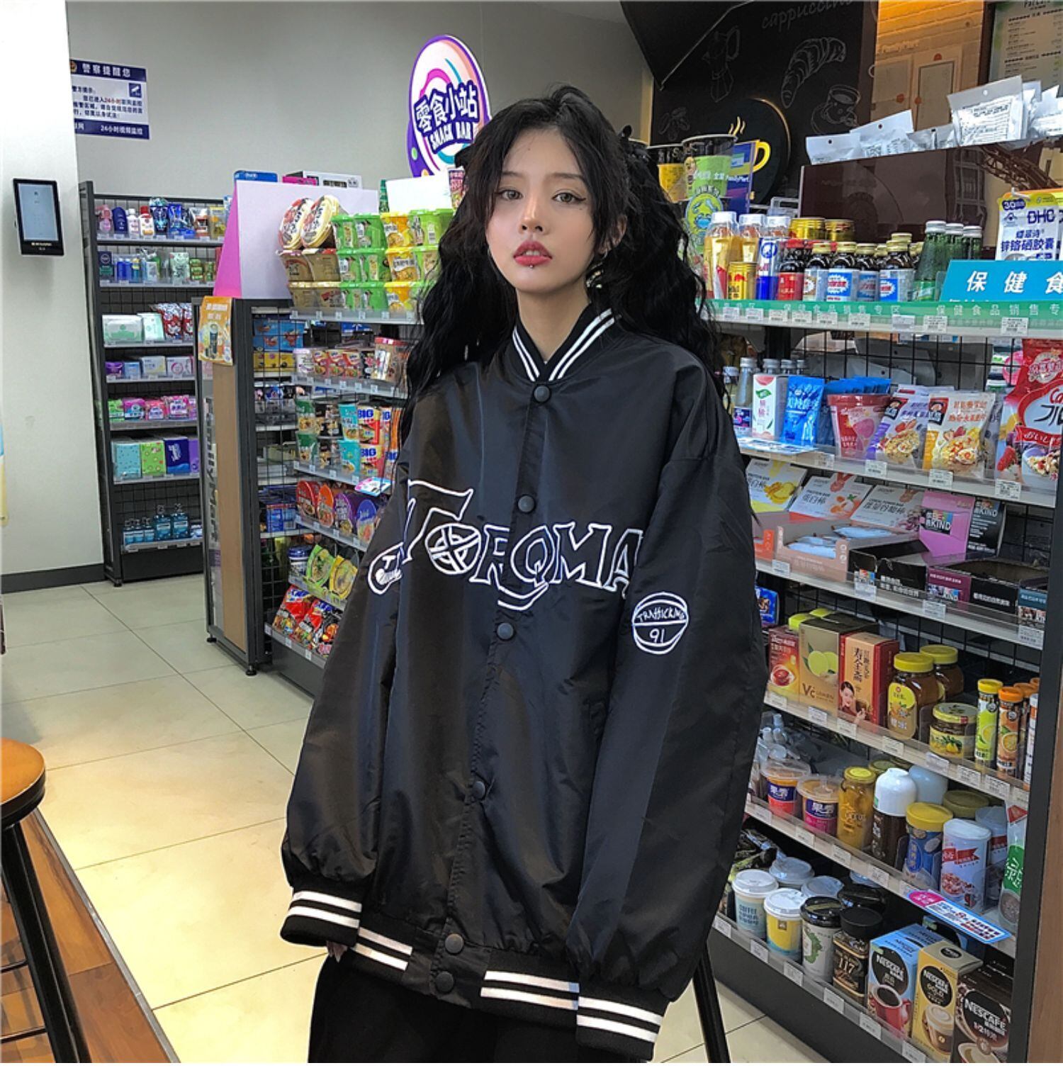 ジャケット レディース秋物韓国ファッショントレンド刺繍ブラックルーズ オータム スタイル デーモン18941622889