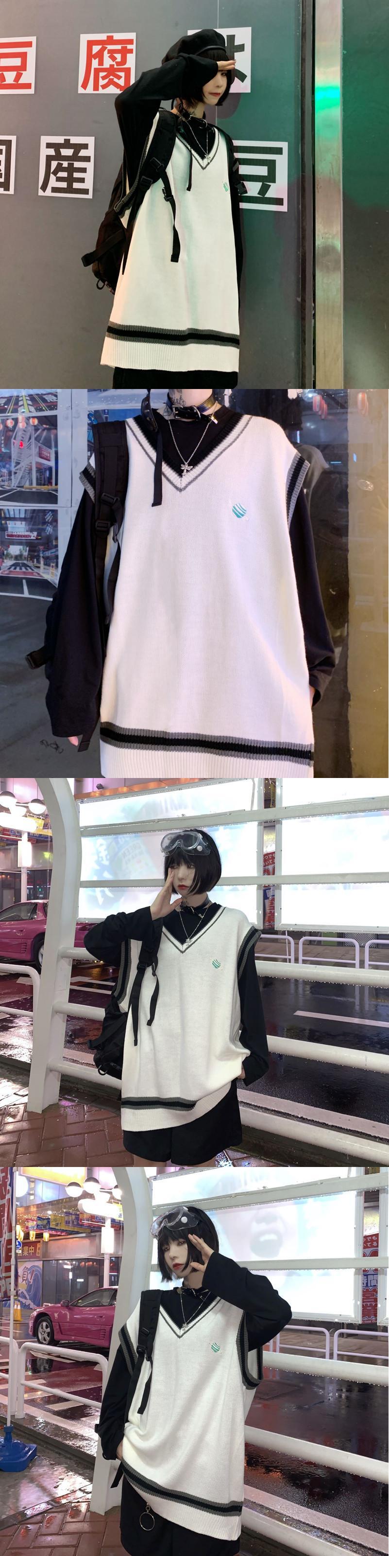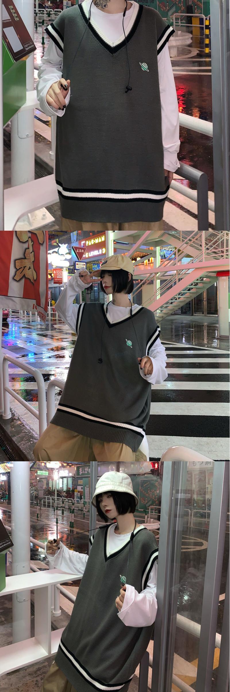 ジャケット レディース秋物韓国ファッショントレンドスタンダードVネックルーズノースリーブプルオーバー セーター レトロ オータム スタイル デーモン60590869227