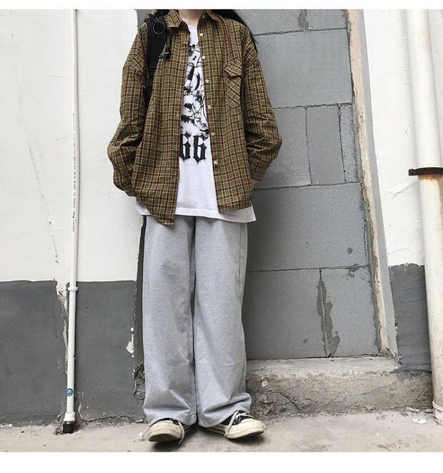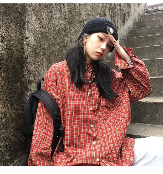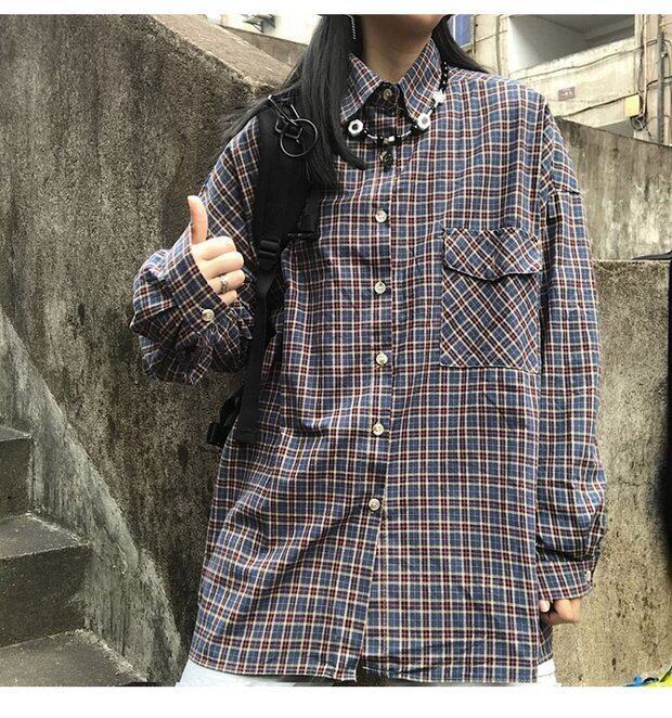 トップス レディース秋物韓国ファッショントレンドスタイルスタンダード格子柄ルーズカジュアルシャツ ロング レトロ オータム 長袖 デーモン87654813941