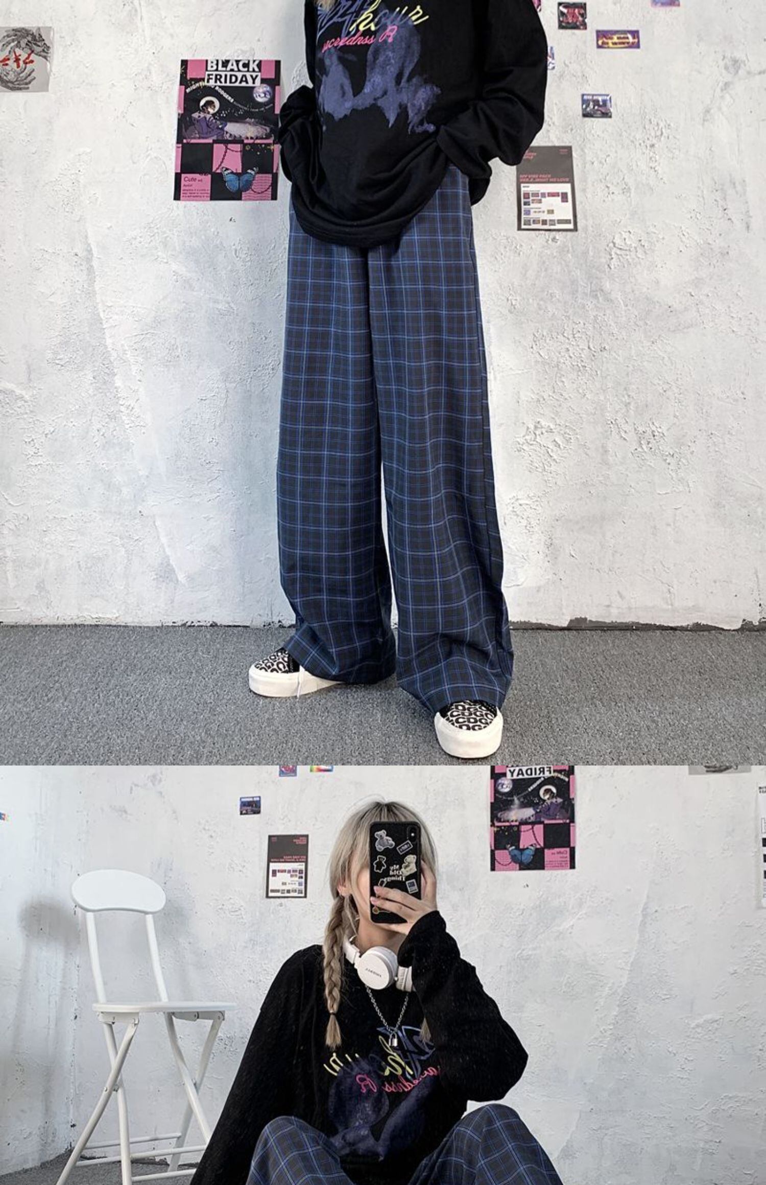 格子柄パンツ レディース韓国ファッショントレンドスタンダードギャザーワイドレッグルーズハイウェストウェスト薄手カジュアル レトロ ワイドパンツ スタイル ウエスト デーモン12777357330