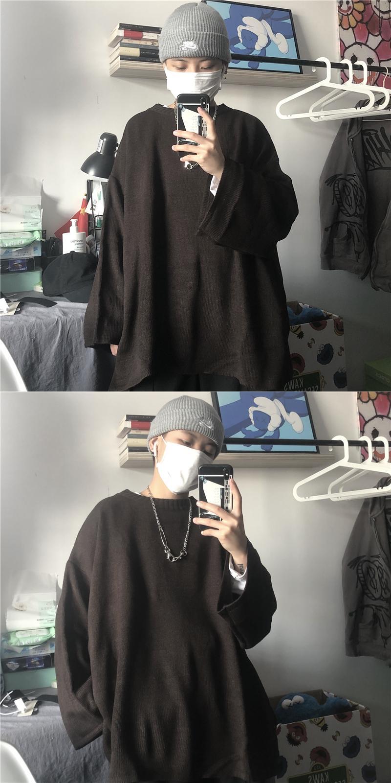 セーター レディース秋物韓国ファッショントレンドラウンドネックルーズプルオーバー ロング オータム Oネック スタイル 長袖 デーモン36525103314