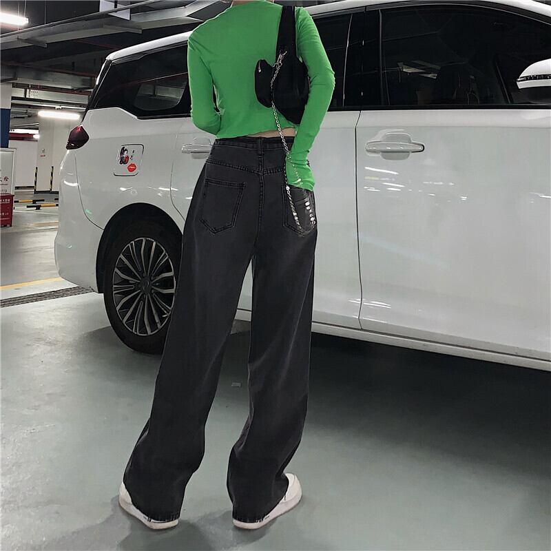 ジーンズ レディース秋物ウィンター韓国ファッショントレンドワイドレッグパンツ ハイウェストウェストルーズスリム ストリート オータム 冬物 ワイドパンツ スタイル ウエスト デーモン30271166103