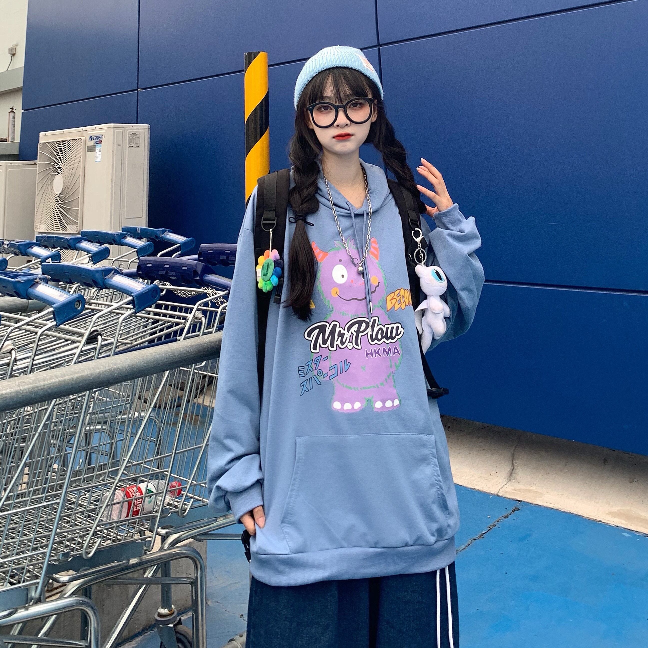 セーター レディース秋物韓国ファッショントレンドプリント柄ルーズフードジャケット ロング オータム ボーイズ スタイル 長袖 デーモン28065992709