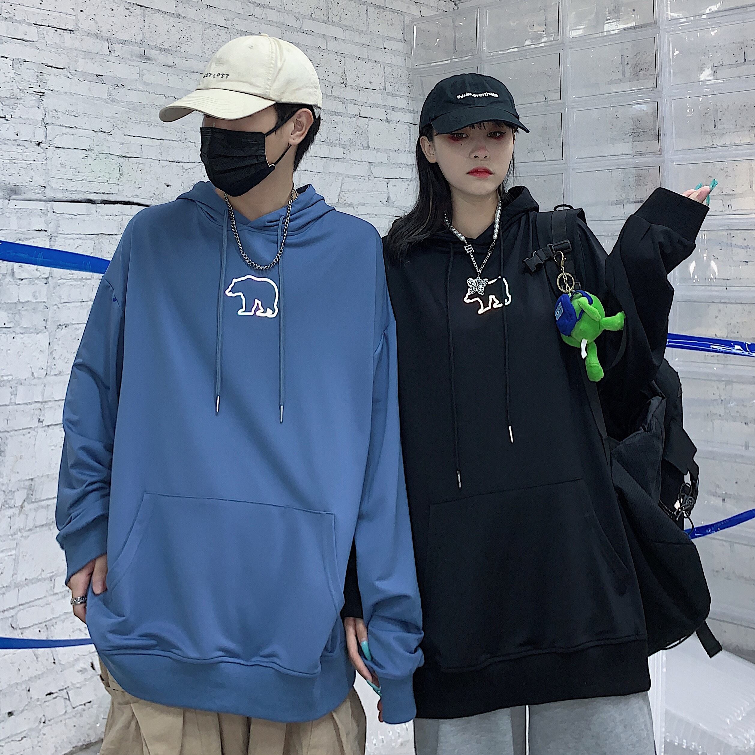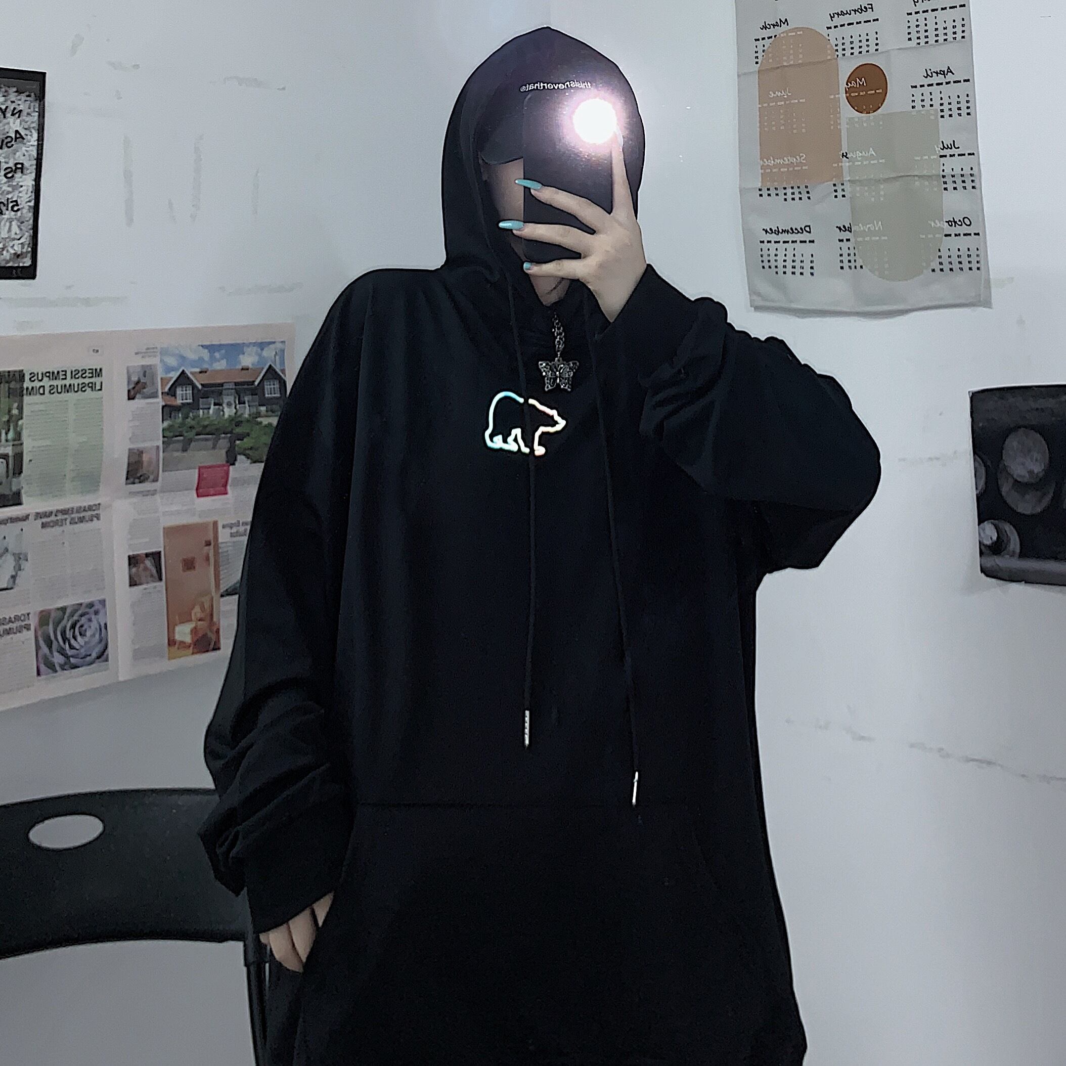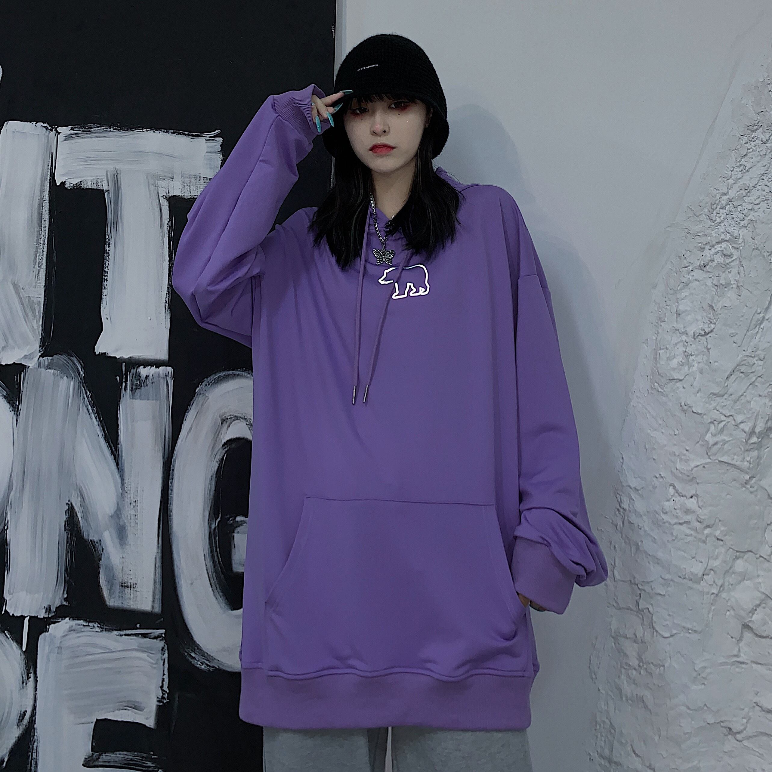 秋物韓国ファッショントレンドスタイルフードセーター ルーズトップス ロング 原宿 オータム 長袖 デーモン96882065268