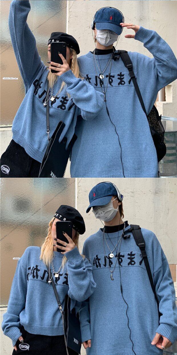 セーター 秋物ウィンター韓国ファッショントレンドスタンダードジャカードルーズロングショートニットジャケット レディース レトロ オータム 冬物 スタイル デーモン15843893212