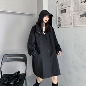 秋物ジャケット レディース韓国ファッショントレンドスタイルブラックルーズカジュアルフード オータム ミドル丈 デーモン56866058174