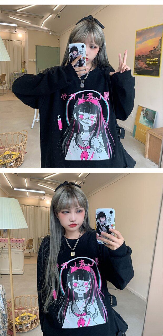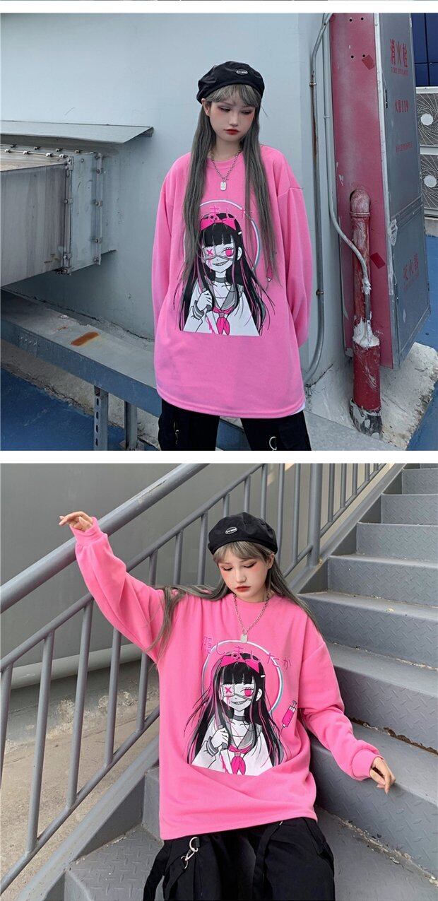 秋物レディースジャケット 韓国ファッショントレンドプリントルーズプルオーバー セーター ロング オータム ボーイズ スタイル 長袖 デーモン41363165966