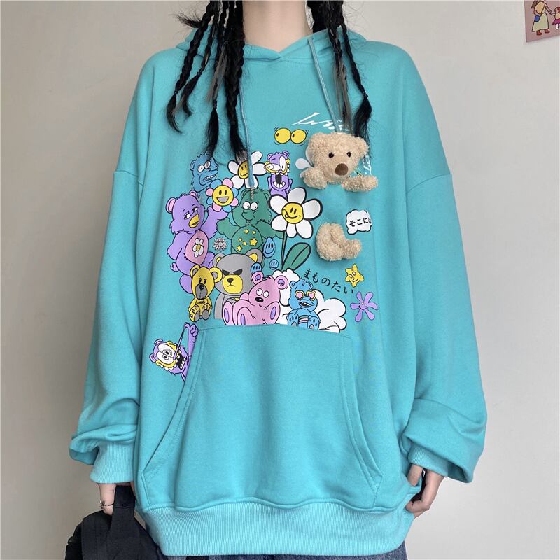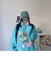 秋物ジャケット レディース韓国ファッショントレンドプリントルーズフードセーター ロング オータム ボーイズ スタイル 長袖 デーモン95146227571