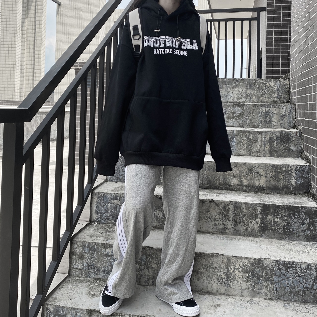 セーター レディース秋物ウィンター韓国ファッショントレンドプリントルーズ厚みフードトップス ロング オータム 冬物 ボーイズ スタイル 長袖 デーモン86285905042